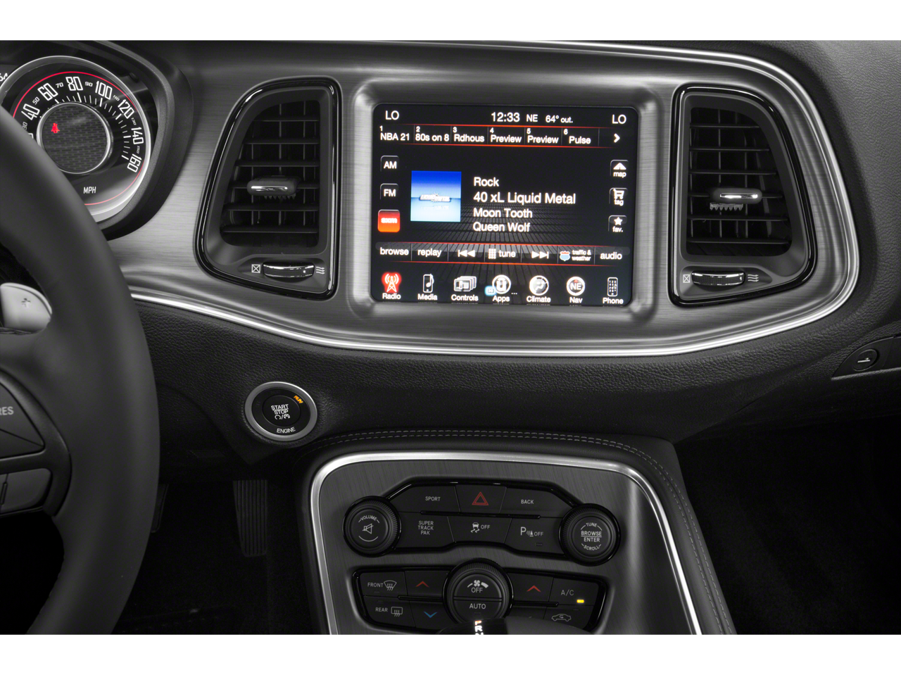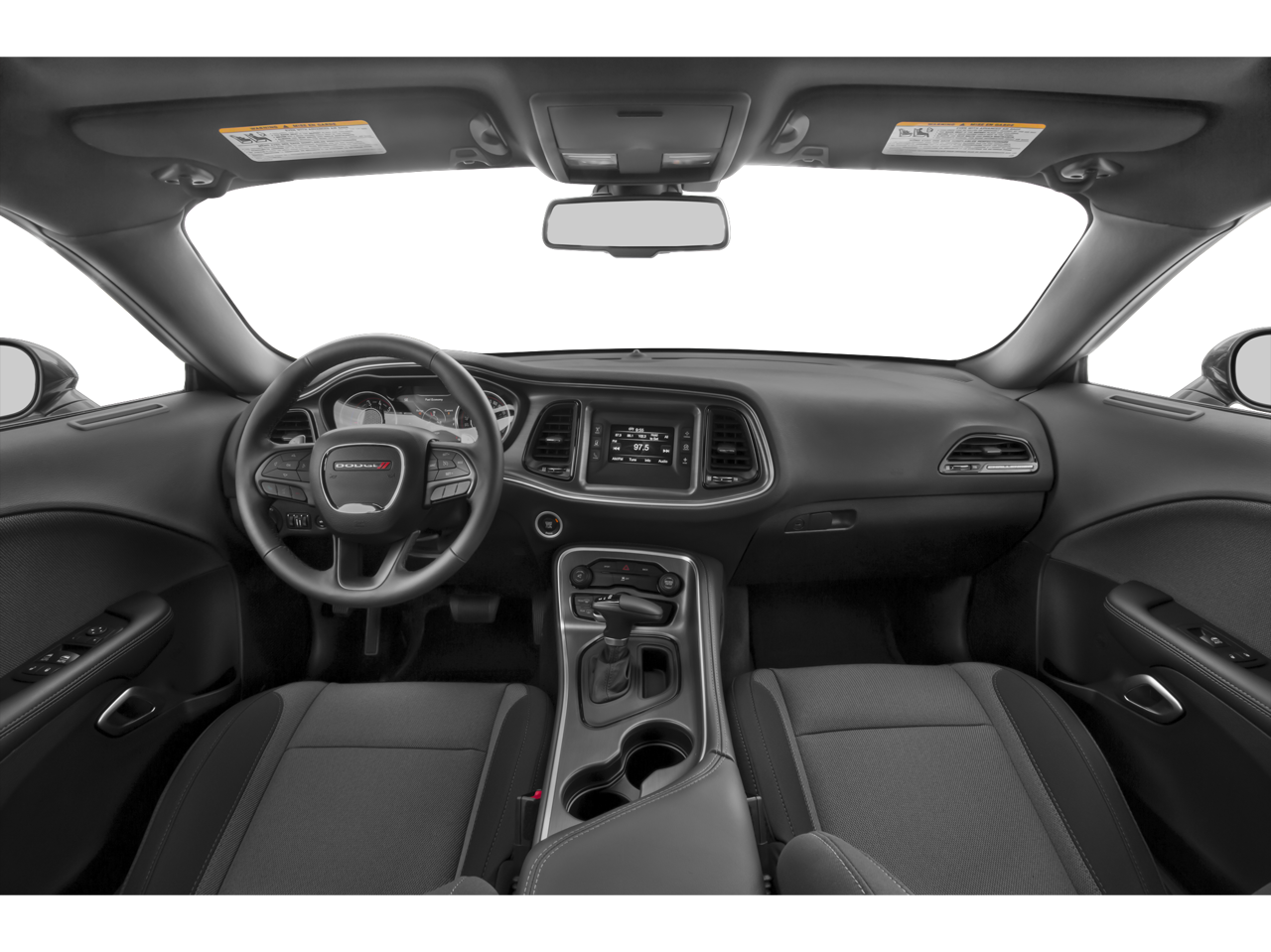 Below is all the standard equipment Quick Order Package 21A SXT (Dual Bright Exhaust Tips), Super Track Pak (Anti-Lock 4-Wheel Disc HD Brakes, ParkSense Rear Park Assist System, ParkView Rear Back-Up Camera, Performance Steering, Rear Bodycolor Spoiler, and Sport Suspension), 1-Yr SiriusXM Radio Service, 4-Wheel Disc Brakes, 6 Speakers, ABS brakes, Air Conditioning, Alloy wheels, AM/FM radio, Anti-whiplash front head restraints, Auto Leather Wrapped Shift Knob, Auto-dimming Rear-View mirror, Automatic temperature control, AutoStick Automatic Transmission, Brake assist, Bumpers: body-color, Compass, Delay-off headlights, Driver door bin, Driver vanity mirror, Dual front impact airbags, Dual front side impact airbags, Electronic Stability Control, For More Info, Call 800-643-2112, Four wheel independent suspension, Front anti-roll bar, Front Bucket Seats, Front Center Armrest, Front dual zone A/C, Front reading lights, Fully automatic headlights, GPS Antenna Input, Harman Radio Manufacturer, Heated door mirrors, Houndstooth Cloth Sport Seats, Illuminated entry, Integrated Voice Command w/Bluetooth®, Leather Shift Knob, Low tire pressure warning, Media Hub (SD, USB, AUX), Outside temperature display, Overhead airbag, Overhead console, Panic alarm, Passenger door bin, Passenger vanity mirror, Power door mirrors, Power driver seat, Power steering, Power windows, Radio data system, Radio: Uconnect 5.0, Rear anti-roll bar, Rear reading lights, Rear seat center armrest, Rear window defroster, Remote keyless entry, Security system, SiriusXM Satellite Radio, Speed control, Speed-sensing steering, Split folding rear seat, Steering wheel mounted audio controls, Tachometer, Telescoping steering wheel, Tilt steering wheel, Tip Start, Traction control, Trip computer, Variably intermittent wipers, and Wheels: 20 x 8.0 Hyperblack. Awards: