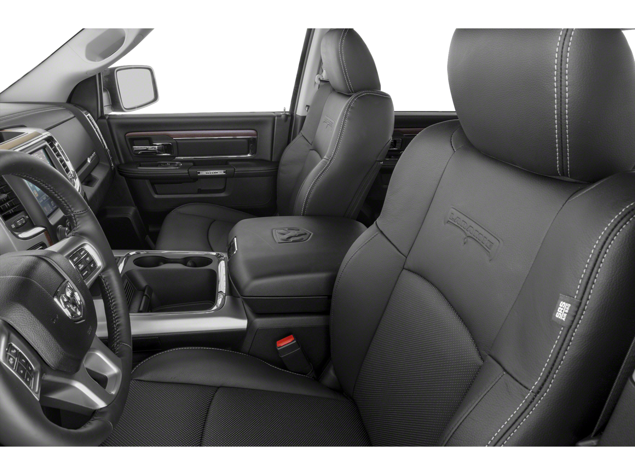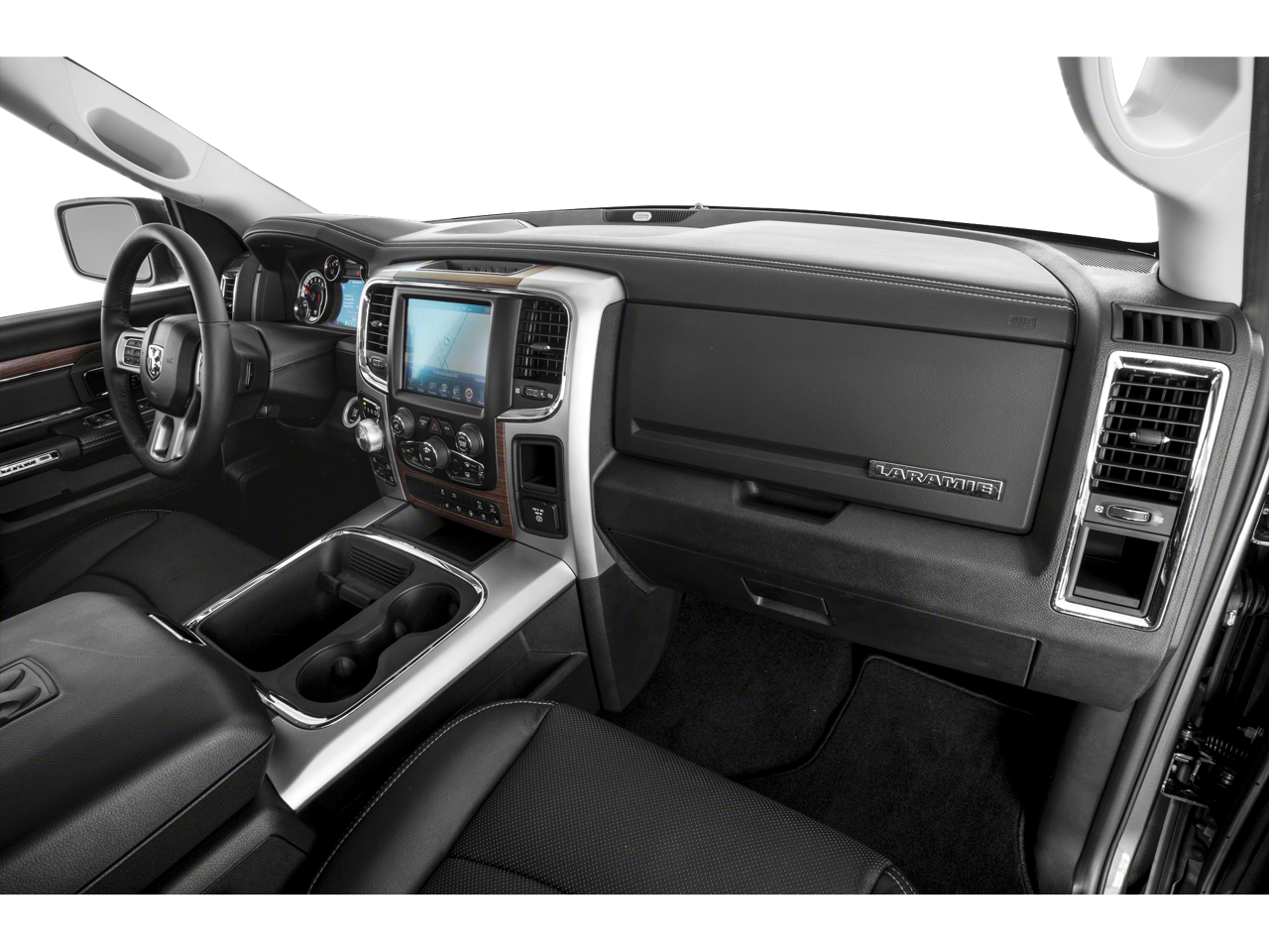 Below is all the standard equipment Convenience Group (Auto High Beam Headlamp Control, Keyless Enter-N-Go, Rain Sensitive Windshield Wipers, and Remote Proximity Keyless Entry), Quick Order Package 26H Laramie, 20 x 9 Chrome Clad Aluminum Wheels, 10 Speakers, 115V Auxiliary Power Outlet, 3.21 Rear Axle Ratio, 4-Wheel Disc Brakes, 8.4 Touchscreen Display, ABS brakes, Active Grille Shutters, Adjustable pedals, Air Conditioning, Alloy wheels, AM/FM radio, Audio memory, Auto-dimming door mirrors, Auto-dimming Rear-View mirror, Automatic temperature control, Brake assist, Bumpers: chrome, Center Hub, Compass, Delay-off headlights, Driver door bin, Driver vanity mirror, Dual front impact airbags, Dual front side impact airbags, Electronic Shift, Electronic Stability Control, Emergency communication system, Folding Flat Load Floor Storage, Front anti-roll bar, Front Center Armrest w/Storage, Front dual zone A/C, Front fog lights, Front reading lights, Front wheel independent suspension, Fully automatic headlights, Garage door transmitter, GPS Antenna Input, Harman Radio Manufacturer, Heated door mirrors, Heated Front Seats, Heated front seats, Heated steering wheel, High Back Seats, Illuminated entry, Integrated Voice Command w/Bluetooth®, Leather steering wheel, Leather Trim 40/20/40 Bench Seat, Low tire pressure warning, Media Hub (SD, USB, AUX), Memory seat, Occupant sensing airbag, Outside temperature display, Overhead airbag, Overhead console, Panic alarm, ParkView Rear Back-Up Camera, Passenger door bin, Passenger vanity mirror, Pedal memory, Power 10-Way Memory Driver & 6-Way Passenger Seats, Power door mirrors, Power driver seat, Power passenger seat, Power steering, Power windows, Radio data system, Radio: Uconnect 8.4A AM/FM/SXM/BT, Rear 60/40 Split Folding Seat, Rear anti-roll bar, Rear seat center armrest, Rear step bumper, Remote keyless entry, Security system, SIRIUSXM Satellite Radio, Speed control, Split folding rear seat, Steering wheel mounted audio controls, Tachometer, Tilt steering wheel, Tip Start, Traction control, Trip computer, Turn signal indicator mirrors, Uconnect Access, Variably intermittent wipers, Ventilated Front Seats, Ventilated front seats, and Voltmeter. Awards: