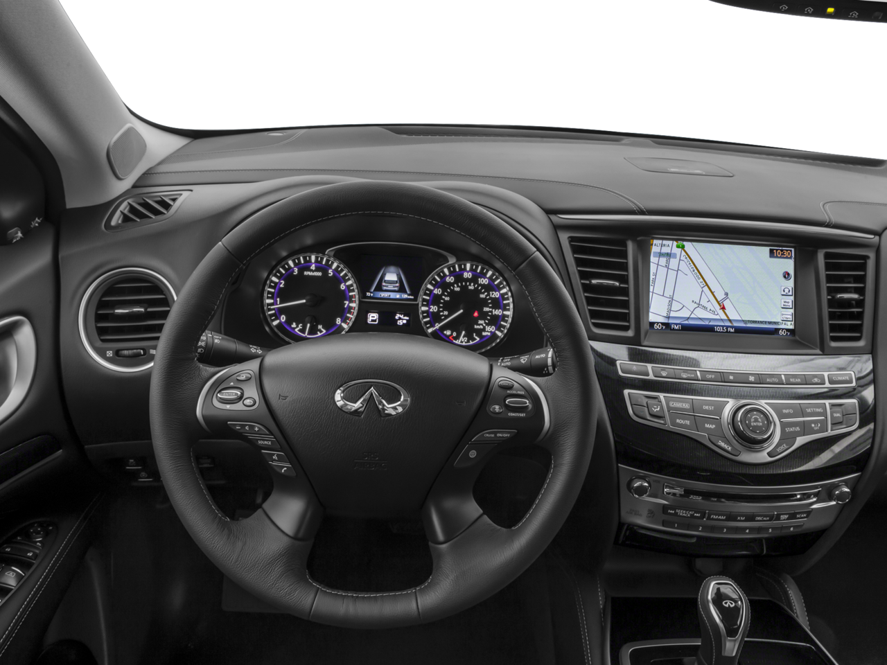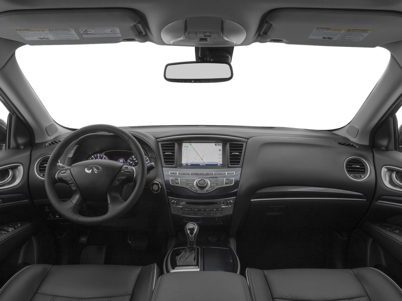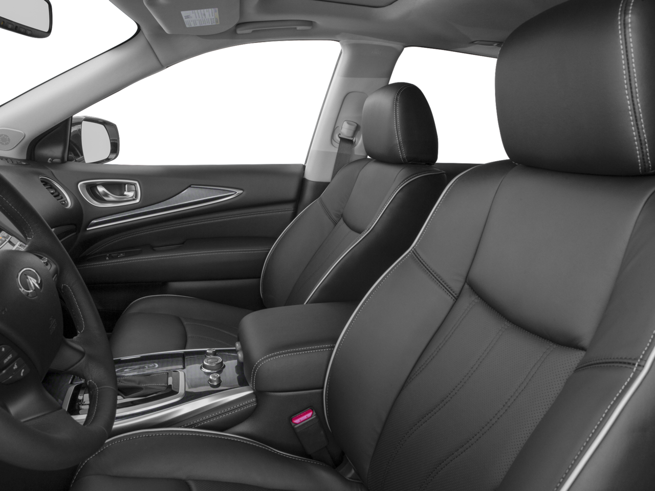 Below is all the standard equipment 20 Wheel & Tire Package (Wheels: 20 15-Spoke Aluminum-Alloy), Cargo Package w/Premium Plus Pkg (Cargo Protector, First Aid Kit, and Rear Cargo Cover), Premium Package (2-Way Driver's Seat Power Lumbar Support, Dual Occupant Memory System, Enhanced Intelligent Key Memory, Entry & Exit Assist, Heated Steering Wheel, Outside Mirrors w/Reverse Tilt-Down Feature, Radio: AM/FM/CD/DVD w/MP3 Playback Capability, and Remote Engine Start), Premium Plus Package (Around View Monitor w/Front & Rear Sonar System, INFINITI InTouch w/Navigation, Rain-Sensing Front Windshield Wipers, Single In-Dash CD Player, and Voice Recognition For Navigation), 3rd row seats: bench, 4-Wheel Disc Brakes, 5.17 Axle Ratio, 6 Speakers, ABS brakes, Air Conditioning, Alloy wheels, AM/FM radio: SiriusXM, AM/FM/CD/MP3 Audio System, Auto-dimming Rear-View mirror, Automatic temperature control, Bodyside moldings, Brake assist, Bumpers: body-color, CD player, Delay-off headlights, Driver door bin, Driver vanity mirror, Dual front impact airbags, Dual front side impact airbags, Electronic Stability Control, Four wheel independent suspension, Front anti-roll bar, Front Bucket Seats, Front Center Armrest w/Storage, Front dual zone A/C, Front fog lights, Front reading lights, Fully automatic headlights, Garage door transmitter, Heated door mirrors, Heated Front Seats, Heated front seats, High intensity discharge headlights: Bi-Xenon, Illuminated entry, Leather Shift Knob, Leather steering wheel, Leather-Appointed Seats, Low tire pressure warning, Occupant sensing airbag, Outside temperature display, Overhead airbag, Overhead console, Panic alarm, Passenger door bin, Passenger vanity mirror, Power door mirrors, Power driver seat, Power Liftgate, Power moonroof, Power passenger seat, Power steering, Power windows, Radio data system, Rear air conditioning, Rear anti-roll bar, Rear reading lights, Rear seat center armrest, Rear window defroster, Rear window wiper, Reclining 3rd row seat, Remote keyless entry, Security system, Speed control, Speed-sensing steering, Speed-Sensitive Wipers, Splash Guards (Color-Matched Set of 4), Split folding rear seat, Spoiler, Steering wheel mounted audio controls, Tachometer, Telescoping steering wheel, Tilt steering wheel, Traction control, Trip computer, Turn signal indicator mirrors, Variably intermittent wipers, and Wheels: 18 Triple 5-Spoke Aluminum-Alloy. Awards: