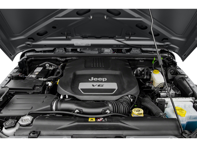 Below is all the standard equipment Big Bear Package, Connectivity Group (Remote USB Port, Tire Pressure Monitoring Display, Uconnect Voice Command w/Bluetooth®, and Vehicle Information Center), LED Lighting Group (LED Fog Lamps and LED Reflector Headlamps), Power Convenience Group (Auto-Dimming Mirror w/Reading Lamp, Front 1-Touch Down Power Windows, Power Heated Mirrors, Power Locks, Remote Keyless Entry, and Security Alarm), Quick Order Package 24Q Big Bear (DISC) (1-Yr SiriusXM Radio Service, 115V Auxiliary Power Outlet, Air Conditioning, BF Goodrich Brand Tires, Black/Chrome Screws Fuel Filler Door, Cloth Sport Mesh Sedoso Seats (DISC), Deep Tint Sunscreen Windows, Driver Height Adjuster Seat, Granite Crystal Jeep Badge, Heavy Duty Suspension w/Gas Shocks (DISC), Iron Gray Interior Accents, Jeep Trail Rated Kit, Low Gloss Black Grille, Low Gloss Black Wrangler Decal, Mid Gloss Granite Crystal Appliques, MOPAR Black Tail Lamp Guards, MOPAR Coat Hooks & Grab Handles, MOPAR Slush Mats, Premium Black Sunrider Soft Top, R1234YF A/C Refrigerant, SIRIUS Satellite Radio, Topographical Hood Decal, Wheels: 17 x 7.5 Blk Semi-Gloss Aluminum (DISC), and Wrangler Hood Decal Low Gloss Black), Black 3-Piece Hard Top, Delete Sunrider Soft Top, Freedom Panel Storage Bag, GPS Navigation, Rear Window Defroster, Rear Window Wiper/Washer, 16 x 7.0 Luxury Styled Steel Wheels, 3.21 Rear Axle Ratio, 4-Wheel Disc Brakes, 40GB Hard Drive w/28GB Available, 5-Year SiriusXM Travel Link Service, 6.5 Touchscreen Display, 8 Speakers, ABS brakes, Alpine 9-Speaker w/All Weather Subwoofer, AM/FM radio, Audio Jack Input for Mobile Devices, Brake assist, CD player, Cloth Seats w/Adjustable Head Restraints, Compass, Driver door bin, Driver vanity mirror, Dual front impact airbags, Electronic Stability Control, Front anti-roll bar, Front Bucket Seats, Front Center Armrest w/Storage, Front fog lights, Integrated roll-over protection, Low tire pressure warning, Normal Duty Suspension, Occupant sensing airbag, Outside temperature display, Passenger door bin, Passenger vanity mirror, Power steering, Radio: 130, Radio: 430 Nav (DISC), Rear anti-roll bar, SIRIUSXM Travel Link, Speed control, Steering wheel mounted audio controls, Tachometer, Tilt steering wheel, Traction control, Trip computer, and Variably intermittent wipers. Awards: