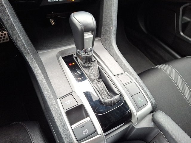 Below is all the standard equipment Black w/Fabric Seating Surfaces, Wheels: 18 Alloy w/Gloss Black Inserts, 4-Wheel Disc Brakes, 8 Speakers, ABS brakes, Air Conditioning, Alloy wheels, AM/FM radio, Apple CarPlay/Android Auto, Auto High-beam Headlights, Automatic temperature control, Brake assist, Bumpers: body-color, Cloth Seat Trim, Delay-off headlights, Driver door bin, Driver vanity mirror, Dual front impact airbags, Dual front side impact airbags, Electronic Stability Control, Emergency communication system: HondaLink, Exterior Parking Camera Rear, Forward collision: Collision Mitigation Braking System (CMBS) + FCW mitigation, Four wheel independent suspension, Front anti-roll bar, Front Bucket Seats, Front Center Armrest, Front fog lights, Front reading lights, Fully automatic headlights, Illuminated entry, Lane departure: Lane Keeping Assist System (LKAS) active, Leather Shift Knob, Low tire pressure warning, Occupant sensing airbag, Outside temperature display, Overhead airbag, Panic alarm, Passenger door bin, Passenger vanity mirror, Power door mirrors, Power steering, Power windows, Radio data system, Radio: 180-Watt AM/FM Audio System, Rear anti-roll bar, Rear window defroster, Remote keyless entry, Security system, Speed control, Speed-sensing steering, Split folding rear seat, Spoiler, Steering wheel mounted audio controls, Tachometer, Telescoping steering wheel, Tilt steering wheel, Traction control, and Trip computer.