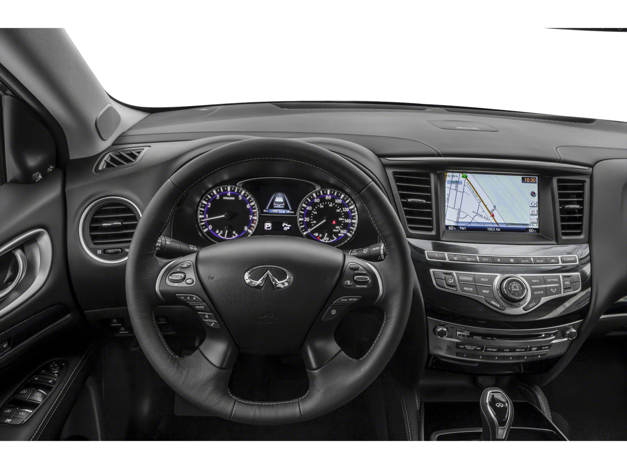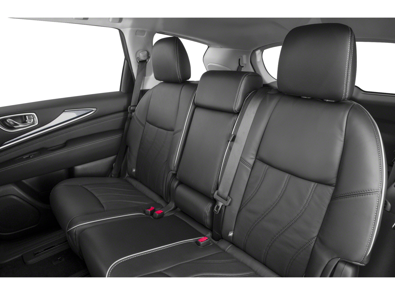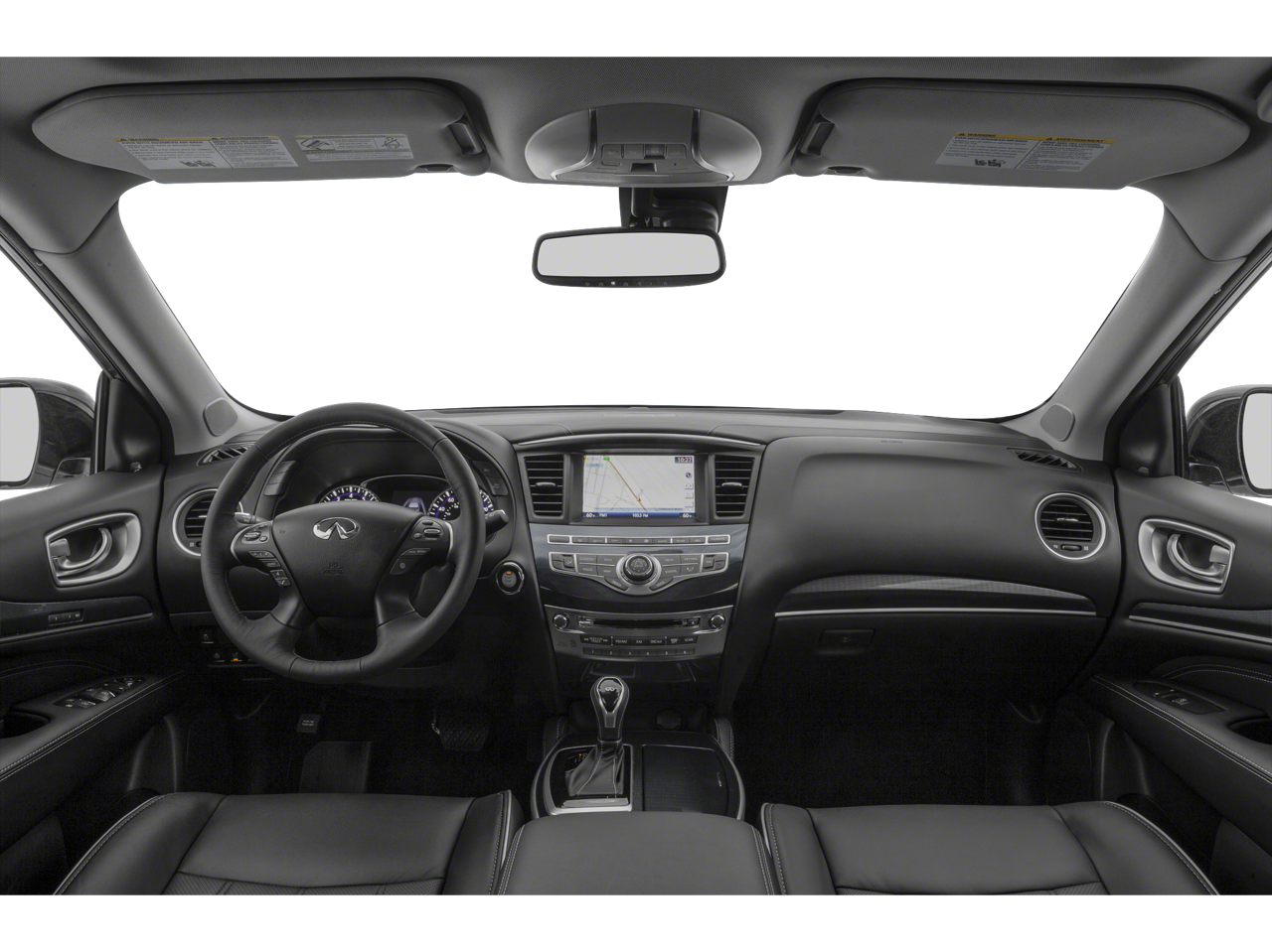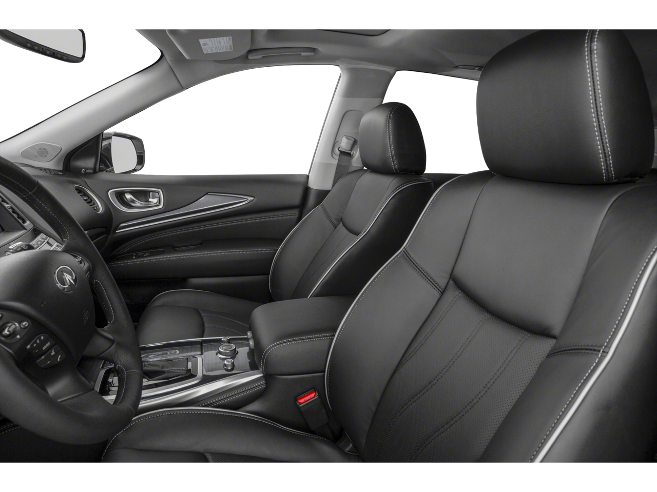 Below is all the standard equipment Cargo Package Essential (Cargo Protector, Console Net, First Aid Kit, and Rear Cargo Cover), Essential Package (Around View Monitor w/Moving Object Detection, Front & Rear Sonar System (2FR/2RR), Illuminated Kick Plates (IKP), INFINITI InTouch w/Navigation & InTouch Services, Leather-Appointed Seat Trim, Rain-Sensing Front Windshield Wipers, and Voice Recognition for Navigation Functions), Navigation System, Wheels: 18 Triple 5-Spoke Aluminum-Alloy, 13 Speakers, 3rd row seats: bench, 4-Wheel Disc Brakes, 5.25 Axle Ratio, ABS brakes, Air Conditioning, Alloy wheels, AM/FM radio: SiriusXM, Anti-whiplash front head restraints, Auto-dimming Rear-View mirror, Automatic temperature control, Bodyside moldings, Brake assist, Bumpers: body-color, Carpeted Floor Mats (4-Piece Set), CD player, Delay-off headlights, Driver door bin, Driver vanity mirror, Dual front impact airbags, Dual front side impact airbags, Electronic Stability Control, Four wheel independent suspension, Front anti-roll bar, Front Bucket Seats, Front Center Armrest w/Storage, Front dual zone A/C, Front fog lights, Front reading lights, Fully automatic headlights, Garage door transmitter: HomeLink, Heated door mirrors, Heated Front Seats, Heated front seats, Heated steering wheel, Illuminated entry, Illuminated Kick Plates (K11), Leather steering wheel, Leatherette Seat Trim, Literature Kit, Low tire pressure warning, Memory seat, Occupant sensing airbag, Outside temperature display, Overhead airbag, Overhead console, Panic alarm, Passenger door bin, Passenger vanity mirror, Power door mirrors, Power driver seat, Power Liftgate, Power moonroof, Power passenger seat, Power steering, Power windows, Radio data system, Radio: AM/FM/CD/DVD w/Bose Premium Audio System, Rear air conditioning, Rear anti-roll bar, Rear Bumper Protector, Rear reading lights, Rear seat center armrest, Rear window defroster, Rear window wiper, Reclining 3rd row seat, Remote keyless entry, Roof rack: rails only, Security system, Speed control, Speed-sensing steering, Speed-Sensitive Wipers, Splash Guards (Color Matched, Set of 4), Split folding rear seat, Spoiler, Steering wheel memory, Steering wheel mounted audio controls, Tachometer, Telescoping steering wheel, Tilt steering wheel, Traction control, Trip computer, Turn signal indicator mirrors, and Variably intermittent wipers. Awards:
