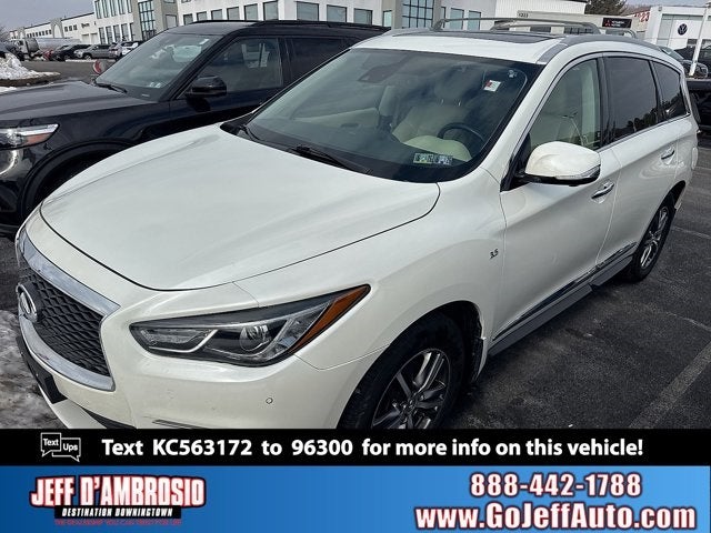 2019 INFINITI QX60 LUXE in Majestic White with High Contrast Wheat Leatherette.