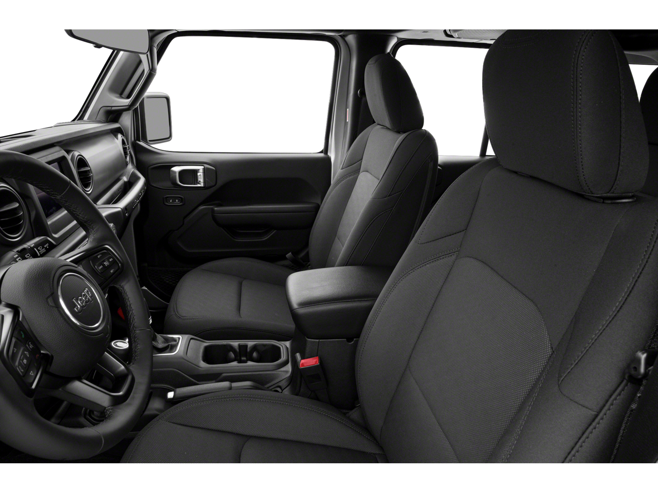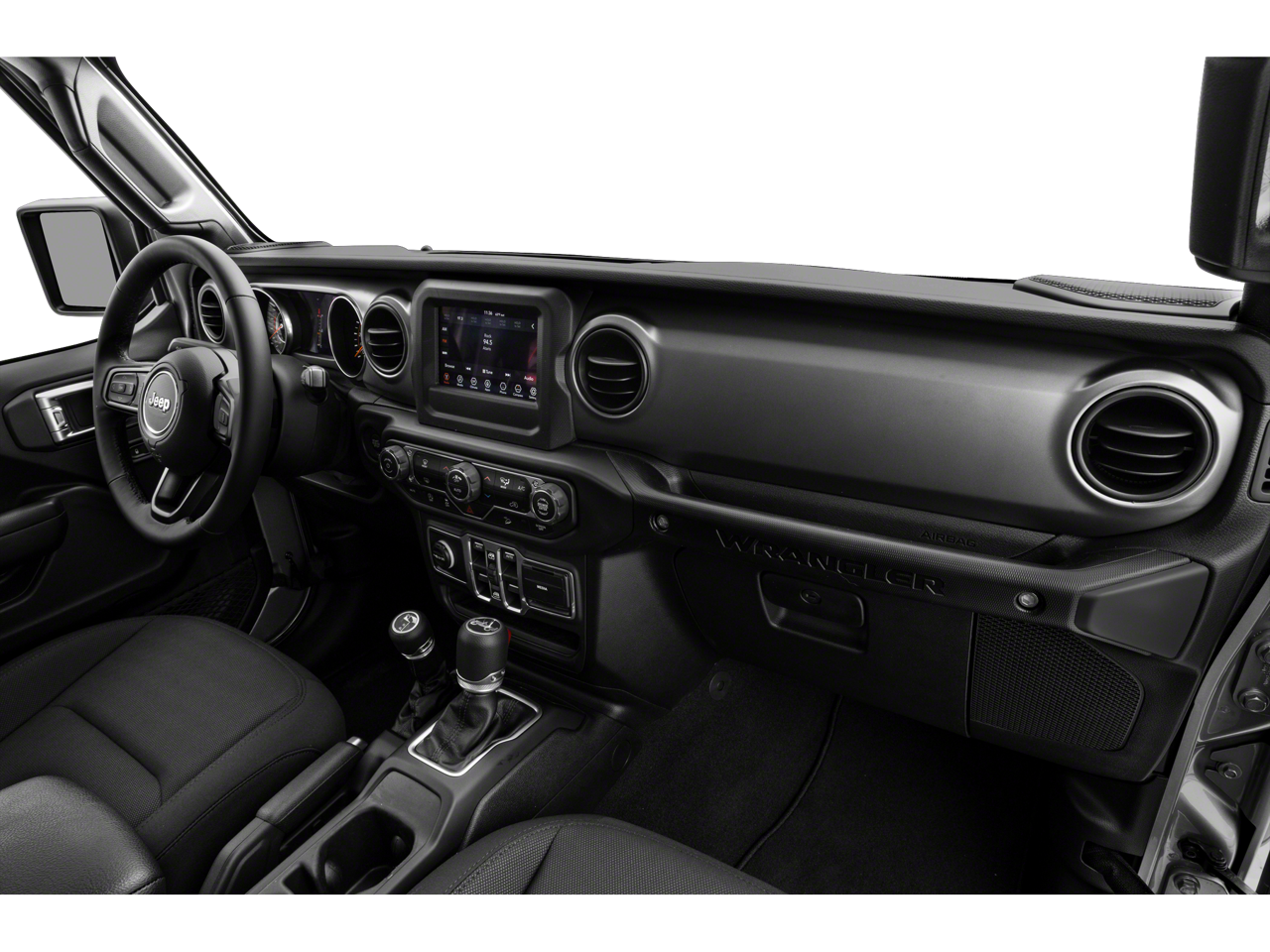 Below is all the standard equipment Cold Weather Group (Heated Front Seats and Heated Steering Wheel), Convenience Group (Universal Garage Door Opener), Quick Order Package 24S Sport S (Automatic Headlamps, Deep Tint Sunscreen Windows, Front 1-Touch Down Power Windows, Leather Wrapped Steering Wheel, Power Heated Mirrors, Remote Keyless Entry, Security Alarm, Speed Sensitive Power Locks, Sun Visors w/Illuminated Vanity Mirrors, and Wheels: 17 x 7.5 Tech Silver Aluminum), Technology Group (1-Yr SiriusXM Radio Service, 7.0 Touchscreen Display, Air Conditioning w/Auto Temperature Control, Air Filtering, Apple CarPlay, Cluster 7.0 TFT Color Display, For More Info, Call 800-643-2112, Google Android Auto, GPS Antenna Input, Integrated Center Stack Radio, Radio: Uconnect 4 w/7 Display, SiriusXM Satellite Radio, and USB Host Flip), Black 3-Piece Hard Top, Freedom Panel Storage Bag, No Soft Top, Rear Window Defroster, Rear Window Wiper/Washer, 3.45 Rear Axle Ratio, 4-Wheel Disc Brakes, 8 Speakers, ABS brakes, Air Conditioning, AM/FM radio, Brake assist, Cloth Low-Back Bucket Seats, Compass, Delay-off headlights, Driver door bin, Driver vanity mirror, Dual front impact airbags, Dual front side impact airbags, Electronic Stability Control, Front anti-roll bar, Front Bucket Seats, Front Center Armrest w/Storage, Front fog lights, Front reading lights, Integrated roll-over protection, Low tire pressure warning, MOPAR All-Weather Floor Mats, Non-Lock Fuel Cap w/o Discriminator, Normal Duty Suspension, Occupant sensing airbag, Outside temperature display, ParkView Rear Back-Up Camera, Passenger door bin, Passenger vanity mirror, Power steering, Radio data system, Radio: Uconnect 3 w/5 Display, Rear anti-roll bar, Rear reading lights, Speed control, Split folding rear seat, Steering wheel mounted audio controls, Tachometer, Telescoping steering wheel, Tilt steering wheel, Traction control, Trip computer, Variably intermittent wipers, and Wheels: 17 x 7.5 Black Steel Styled.