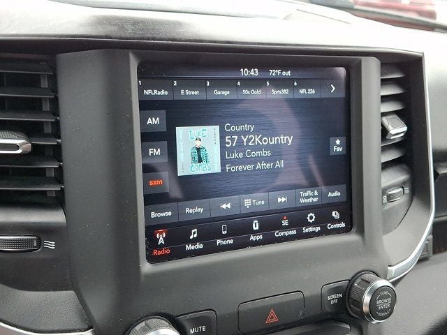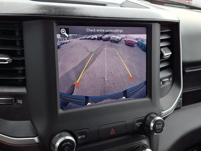 Below is all the standard equipment Big Horn Level 1 Equipment Group (Auto-Dimming Rear-View Mirror, Big Horn IP Badge, Class IV Receiver Hitch, Cluster 3.5 TFT Color Display, Foam Bottle Insert (Door Trim Panel), Glove Box Lamp, Power 4-Way Driver Lumbar Adjust, Power 8-Way Driver Seat, Power Adjustable Pedals, Power Heated Fold Away Mirrors, Radio: Uconnect 4 w/8.4 Display, Rear Dome w/On/Off Switch Lamp, Rear Power Sliding Window, Rear Window Defroster, Single Disc Remote CD Player, SiriusXM Satellite Radio, Sun Visors w/Illuminated Vanity Mirrors, and Universal Garage Door Opener), Quick Order Package 25Z Big Horn/Lone Star (Steering Wheel Mounted Audio Controls), Sport Appearance Package (3 Rear Seat Head Restraints, 4 Way Front Headrests, Auto-Dimming Exterior Driver Mirror, Black Interior Accents, Body Color Door Handles, Body Color Front Bumper, Body Color Rear Bumper w/Step Pads, Bucket Seats, Center Console Parts Module, Deluxe Cloth Bucket Seats, Exterior Mirrors Courtesy Lamps, Exterior Mirrors w/Memory, Exterior Mirrors w/Supplemental Signals, Front Seat Back Map Pockets, Full Length Floor Console, Grille B/Color Outline 1 Texture 2, Manual Adjust 4-Way Front Passenger Seat, Power Heated Fold-Away Mirrors, Power-Folding Mirrors, and Rear 60/40 Folding Seat), Wheels: 20 x 9 Aluminum Chrome Clad, 3.21 Rear Axle Ratio, 4-Wheel Disc Brakes, 48V Belt Starter Generator, 6 Speakers, ABS brakes, Air Conditioning, Alloy wheels, AM/FM radio, Brake assist, Bumpers: chrome, Cloth Bench Seat, Compass, Delay-off headlights, Deployable Bed Step, Driver door bin, Dual front impact airbags, Dual front side impact airbags, Electronic Stability Control, Front anti-roll bar, Front Center Armrest w/Storage, Front fog lights, Front reading lights, Front wheel independent suspension, Fully automatic headlights, GPS Antenna Input, Heated door mirrors, Illuminated entry, Leather steering wheel, Low tire pressure warning, Occupant sensing airbag, Outside temperature display, Overhead airbag, Overhead console, Panic alarm, ParkView Rear Back-Up Camera, Passenger door bin, Passenger vanity mirror, Power door mirrors, Power steering, Power windows, Radio data system, Radio: Uconnect 3 w/5 Display, Rear anti-roll bar, Rear seat center armrest, Rear step bumper, Remote keyless entry, Remote Start System, Speed control, Split folding rear seat, Tachometer, Telescoping steering wheel, Tilt steering wheel, Traction control, Trip computer, Variably intermittent wipers, and Voltmeter. Awards: