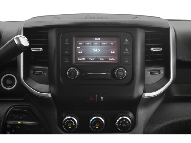 Below is all the standard equipment Quick Order Package 2HZ Big Horn, Quick Order Package 2ZZ Big Horn, 2 Way Rear Headrest Seat, 3.73 Axle Ratio, 4 Way Front Headrests, 4-Wheel Disc Brakes, 40/20/40 Split Bench Seat, 6 Speakers, ABS brakes, Active Noise Control System, Air Conditioning, AM/FM radio, Brake assist, Bumpers: chrome, Capless Fuel Fill w/o Discriminator, Center Hub, Center Stack Storage Drawer, Chrome Accent Shift Control, Chrome Flat Cab-Length Side Steps, Cloth 40/20/40 Bench Seat, Compass, Cummins Turbo Diesel Badge, Delay-off headlights, Diesel Exhaust Brake, Driver door bin, Dual 730 Amp Maintenance Free Batteries, Dual front impact airbags, Dual front side impact airbags, Electronic Stability Control, Electronically Controlled Throttle, Front anti-roll bar, Front Armrest w/Cupholders, Front Bumper Sight Shields, Front Center Armrest w/Storage, Front reading lights, Fully automatic headlights, GPS Antenna Input, Heated door mirrors, Heavy-Duty Engine Cooling, Illuminated entry, Integrated Voice Command w/Bluetooth®, Low tire pressure warning, Manual Adjust 4-Way Driver Seat, Manual Adjust 4-Way Front Passenger Seat, Manufacturer's Statement of Origin, Occupant sensing airbag, Outside temperature display, Overhead airbag, Overhead console, Panic alarm, ParkView Rear Back-Up Camera, Passenger door bin, Passenger vanity mirror, Power door mirrors, Power steering, Power windows, Radio data system, Radio: Uconnect 3 w/5 Display, RAM Active Air, Rear anti-roll bar, Rear Folding Seat, Rear seat center armrest, Rear step bumper, Remote keyless entry, Selectable Tire Fill Alert, Selective Catalytic Reduction (Urea), Speed control, Supplemental Heater, Tachometer, Tilt steering wheel, Tip Start, Tire Fill Alert (DISC), Tow Hooks, Traction control, Trip computer, Turn signal indicator mirrors, USB Host Flip, Variably intermittent wipers, Voltmeter, and Wheels: 18 x 8.0 Steel Chrome Clad.