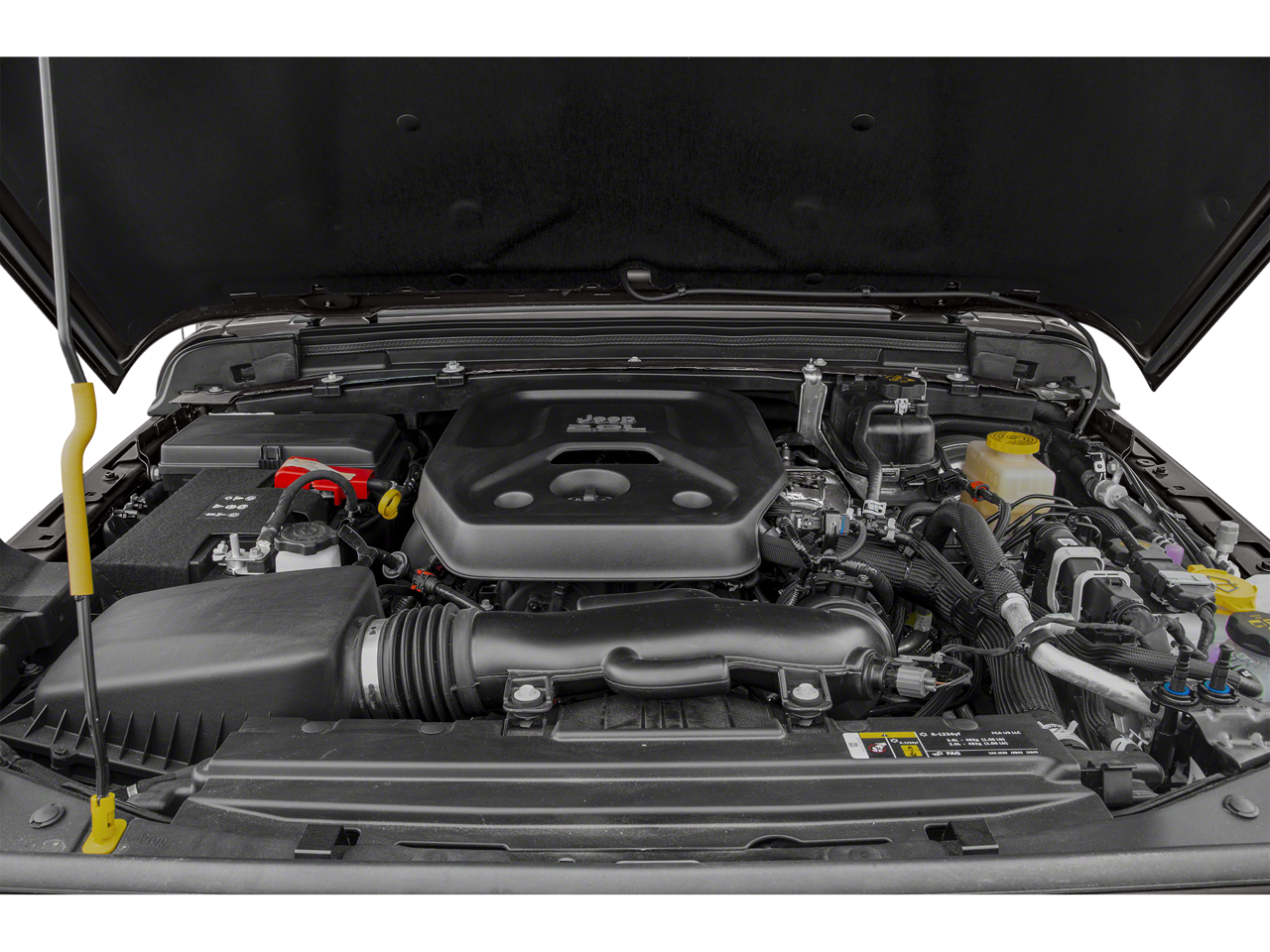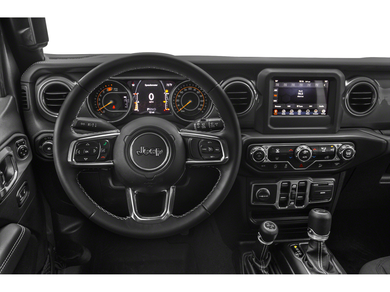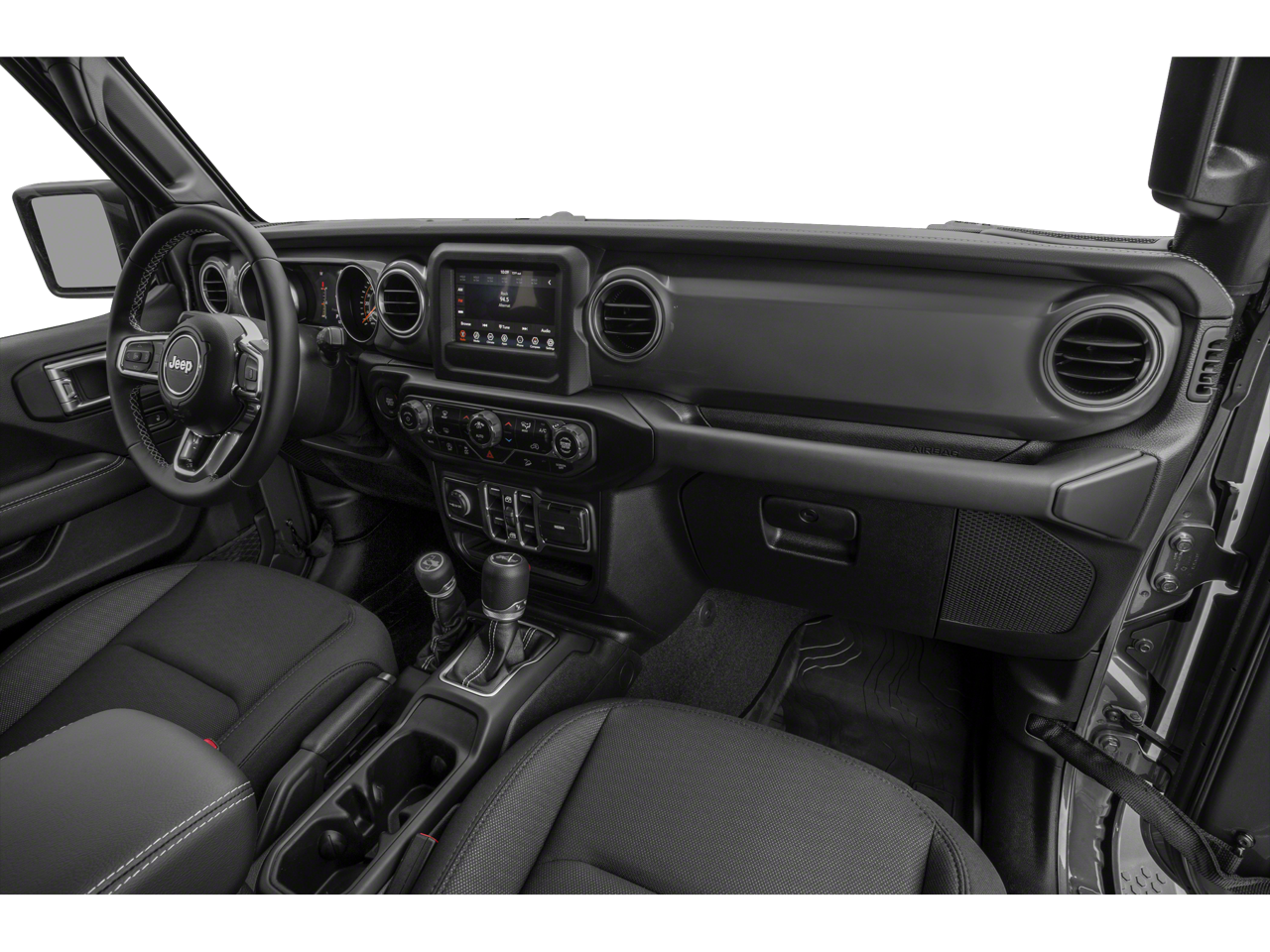 Below is all the standard equipment 8.4 Radio & Premium Audio Group (1-Year SiriusXM Guardian Trial, 4G LTE Wi-Fi Hot Spot, 5-Year SiriusXM Traffic Service, 5-Year SiriusXM Travel Link Service, 8.4 Touchscreen Display, Alpine Premium Audio System, Auto-Dimming Rear-View Mirror, Emergency/Assistance Call, For Details, Visit DriveUconnect.com, GPS Navigation, HD Radio, Radio: Uconnect 4C Nav w/8.4 Display, SiriusXM Traffic Plus, and SiriusXM Travel Link), Cold Weather Group (Heated Front Seats and Heated Steering Wheel), LED Lighting Group (Daytime Running Lamps LED Accents, Front LED Fog Lamps, LED Reflector Headlamps, and LED Taillamps), Quick Order Package 22R, Safety Group (Blind Spot & Cross Path Detection and ParkSense Rear Park Assist System), 4-Wheel Disc Brakes, 4.10 Rear Axle Ratio, 8 Speakers, ABS brakes, Air Conditioning, Alloy wheels, AM/FM radio: SiriusXM, Apple CarPlay/Android Auto, Automatic temperature control, Aux Battery, BF Goodrich Brand Tires, Brake assist, Compass, Delay-off headlights, Driver door bin, Driver vanity mirror, Dual front impact airbags, Dual front side impact airbags, Electronic Stability Control, Front anti-roll bar, Front Bucket Seats, Front Center Armrest w/Storage, Front dual zone A/C, Front fog lights, Front reading lights, Fully automatic headlights, Garage door transmitter, Heated door mirrors, Illuminated entry, Integrated roll-over protection, Leather steering wheel, Low tire pressure warning, MOPAR All-Weather Floor Mats (DISC), Non-Lock Fuel Cap w/o Discriminator, Occupant sensing airbag, Outside temperature display, Panic alarm, ParkView Rear Back-Up Camera, Passenger door bin, Passenger vanity mirror, Performance Suspension, Power door mirrors, Power steering, Power Top Quarter Window Storage Bag, Power windows, Premium Cloth Low-Back Bucket Seats, Radio data system, Radio: Uconnect 4 w/7 Display, Rear anti-roll bar, Rear reading lights, Rear Window Defroster, Rear Window Wiper/Washer, Remote keyless entry, Remote Proximity Keyless Entry, Remote Start System, Removable Rear Quarter Windows, Security system, Sky 1-Touch Power Top, Speed control, Split folding rear seat, Steering wheel mounted audio controls, Stop-Start Dual Battery System, Tachometer, Telescoping steering wheel, Tilt steering wheel, Traction control, Trip computer, Variably intermittent wipers, Voltmeter, Wheels: 17 x 7.5 Black w/Machined Lip, and Wheels: 17 x 7.5 Machined w/Black PocketS.
