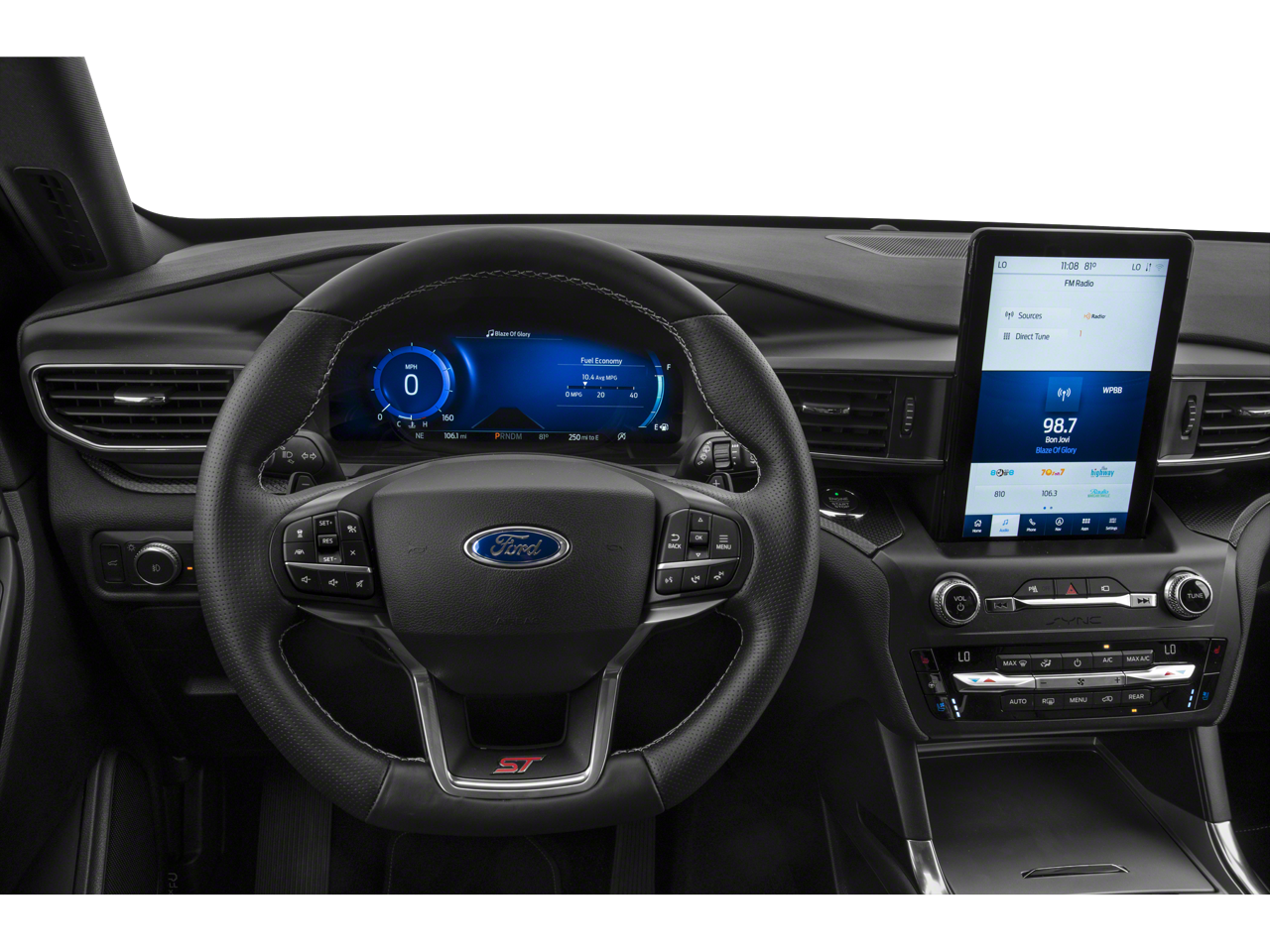 Below is all the standard equipment Equipment Group 401A, Ford Co-Pilot360 Assist+ (Evasive Steering Assist, Intelligent Adaptive Cruise Control, and Speed Sign Recognition), Premium Technology Package (10.1 LCD Capacitive Portrait Touchscreen, 2 Additional Speakers, and Leather Htd/Ventilated Sport Captain's Chairs), ST High Package (110V/150W AC Power Outlet, 360-Degree Camera w/Split View, Active Park Assist 2.0, Auto-Dimming Rearview Mirror (Interior), FordPass Connect, Forward Sensing System, Front Rain-Sensing Wipers, Hands-Free Foot-Activated Liftgate, Memory Driver's Seat, Power Tilt/Telescoping Steering Column, Radio: B&O Sound System by Bang & Olufsen, Reverse Brake Assist, Second Row Heated Seats, Sideview Mirrors w/Gloss Black Caps, SYNC 3 Communications & Entertainment System, Third Row PowerFold (Folds Flat), Universal Garage Door Opener (UGDO), Voice-Activated Touchscreen Navigation System, and Wireless Charging Pad), ST Street Pack (Performance Front & Rear Brakes and Wheels: 21 Aluminum), 4WD, 3.58 Non-Limited-Slip Rear Axle Ratio, 3rd row seats: bench, 4-Wheel Disc Brakes, 6 Speakers, ABS brakes, Air Conditioning, Alloy wheels, AM/FM radio: SiriusXM, AM/FM Stereo, Auto High-beam Headlights, Automatic temperature control, Black Roof-Rack Side Rails, Brake assist, Bumpers: body-color, Compass, Delay-off headlights, Driver door bin, Driver vanity mirror, Dual front impact airbags, Dual front side impact airbags, Electronic Stability Control, Emergency communication system: SYNC 3 911 Assist, Exterior Parking Camera Rear, Four wheel independent suspension, Front & Second Row Floor Liners (16B), Front anti-roll bar, Front Bucket Seats, Front Center Armrest, Front dual zone A/C, Front fog lights, Front reading lights, Fully automatic headlights, Heated door mirrors, Heated front seats, Heated steering wheel, Illuminated entry, Knee airbag, Leather steering wheel, Low tire pressure warning, Occupant sensing airbag, Outside temperature display, Overhead airbag, Overhead console, Panic alarm, Passenger door bin, Passenger vanity mirror, Power door mirrors, Power driver seat, Power Liftgate, Power passenger seat, Power steering, Power windows, Rear air conditioning, Rear anti-roll bar, Rear reading lights, Rear window defroster, Rear window wiper, Remote keyless entry, Security system, SelectShift Capability w/Paddle Shifters, Speed control, Speed-sensing steering, Speed-Sensitive Wipers, Split folding rear seat, Spoiler, Sport steering wheel, Steering wheel mounted audio controls, SYNC 3/Apple CarPlay/Android Auto, Tachometer, Telescoping steering wheel, Tilt steering wheel, Traction control, Trip computer, Twin Panel Moonroof, and Variably intermittent wipers.