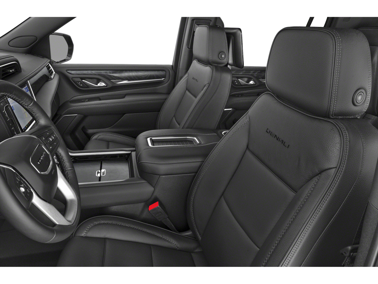 Below is all the standard equipment Advanced Security Package (Glass Breakage Sensor, Theft-Deterrent Alarm System, Vehicle Inclination Sensor, and Vehicle Interior Movement Sensor), Advanced Technology Package (Adaptive Cruise Control, Enhanced Automatic Emergency Braking, Inside Rearview Auto-Dimming Rear Camera Mirror, and Rear Camera Mirror Washer), Denali Premium Package (Dual-Pane Panoramic Power Sunroof and Power-Retractable Assist Steps), Preferred Equipment Group 5SA (12-Way Power Seat Adjusters, 15 Diagonal Multi-Color Head-Up Display, 2 Presets For Outside Rearview Mirrors, 3rd Row 60/40 Power-Folding Split-Bench Seat, Bright Front & Rear Door Sill Plates, Chrome Door Handles w/Body-Color Strip, Dual Exhaust System, Galvano Bodyside Moldings, Hands-Free Power Programmable Rear Liftgate, HD Surround Vision, Heated & Ventilated Driver & Front Passenger Seats, Heated 2nd Row Outboard Position Seats, Heated Automatic Steering Wheel, Heated Driver & Front Passenger Seats, Hill Descent Control, Inside Rear-View Auto-Dimming Mirror, Outside Heated Power-Adjustable Mirrors, Power Release 2nd Row Bucket Seats, Power Tilt & Telescopic Steering Column, Rear Pedestrian Alert, Safety Alert Seat, and Universal Home Remote), License Plate Front Mounting Package, 4WD, 14 Speakers, 3.23 Rear Axle Ratio, 3rd row seats: split-bench, 4-Wheel Disc Brakes, ABS brakes, Adaptive suspension, Air Conditioning, Alloy wheels, AM/FM radio: SiriusXM with 360L, Apple CarPlay/Android Auto, Auto High-beam Headlights, Auto-dimming door mirrors, Auto-dimming Rear-View mirror, Auto-leveling suspension, Automatic Emergency Braking, Automatic temperature control, Bodyside moldings, Bose 14-Speaker Surround w/CenterPoint, Brake assist, Bumpers: body-color, Compass, Delay-off headlights, Driver door bin, Driver vanity mirror, Dual front impact airbags, Dual front side impact airbags, Electronic Stability Control, Emergency communication system: OnStar and GMC connected services capable, Following Distance Indicator, Forward Collision Alert, Four wheel independent suspension, Front & Rear Park Assist, Front anti-roll bar, Front Bucket Seats, Front Center Armrest, Front dual zone A/C, Front fog lights, Front Pedestrian Braking, Front reading lights, Fully automatic headlights, Garage door transmitter, HD Radio, Heads-Up Display, Heated door mirrors, Heated front seats, Heated rear seats, Heated steering wheel, Illuminated entry, IntelliBeam Automatic High Beam On/Off, Jet Black Interior Trim, Lane Change Alert w/Side Blind Zone Alert, Lane Keep Assist w/Lane Departure Warning, Leather steering wheel, Low tire pressure warning, Magnetic Ride Control Suspension, Memory seat, Navigation System, Occupant sensing airbag, Outside temperature display, Overhead airbag, Overhead console, Panic alarm, Passenger door bin, Passenger vanity mirror, Perforated Leather Seating Surfaces, Power door mirrors, Power driver seat,
