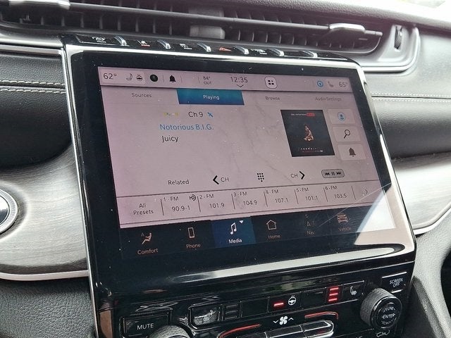 Below is all the standard equipment Quick Order Package 22E, 10.1 Touchscreen Display, 506 Watt Amplifier, 9 Amplified Speakers w/Subwoofer, Apple CarPlay, Connected Travel & Traffic Services, Connectivity - US/Canada, Disassociated Touchscreen Display, Google Android Auto, GPS Antenna Input, GPS Navigation, HD Radio, Integrated Center Stack Radio, Integrated Voice Command w/Bluetooth®, Radio: Uconnect 5 Nav w/10.1 Display, SiriusXM Satellite Radio, SiriusXM w/360L, USB Host Flip, 3.45 Rear Axle Ratio, 3rd row seats: split-bench, 4-Wheel Disc Brakes, 6 Speakers, ABS brakes, Air Conditioning, Alloy wheels, AM/FM radio: SiriusXM w/360L, Anti-whiplash front head restraints, Apple CarPlay/Android Auto, Audio memory, Auto High-beam Headlights, Automatic temperature control, Brake assist, Bumpers: body-color, Capri Leather Seats, Compass, Delay-off headlights, Driver door bin, Driver vanity mirror, Dual front impact airbags, Dual front side impact airbags, Electronic Stability Control, Emergency communication system, Four wheel independent suspension, Front anti-roll bar, Front Bucket Seats, Front Center Armrest w/Storage, Front dual zone A/C, Front fog lights, Front reading lights, Fully automatic headlights, Garage door transmitter, Heated door mirrors, Heated front seats, Heated rear seats, Heated steering wheel, Illuminated entry, Knee airbag, Leather steering wheel, Low tire pressure warning, Manual Fold Seatbacks, Memory seat, Normal Duty Suspension, Occupant sensing airbag, Outside temperature display, Overhead airbag, Overhead console, Panic alarm, ParkView Rear Back-Up Camera, Passenger door bin, Passenger vanity mirror, Power door mirrors, Power driver seat, Power Liftgate, Power passenger seat, Power steering, Power windows, Radio data system, Radio: Uconnect 5 w/8.4 Display, Rear air conditioning, Rear anti-roll bar, Rear reading lights, Rear window defroster, Rear window wiper, Reclining 3rd row seat, Remote keyless entry, Roof rack: rails only, Security system, Speed control, Speed-Sensitive Wipers, Split folding rear seat, Spoiler, Steering wheel mounted audio controls, Tachometer, Telescoping steering wheel, Tilt steering wheel, Traction control, Trip computer, Turn signal indicator mirrors, Variably intermittent wipers, Voltmeter, and Wheels: 18 x 8.0 Fully Painted Aluminum 2.