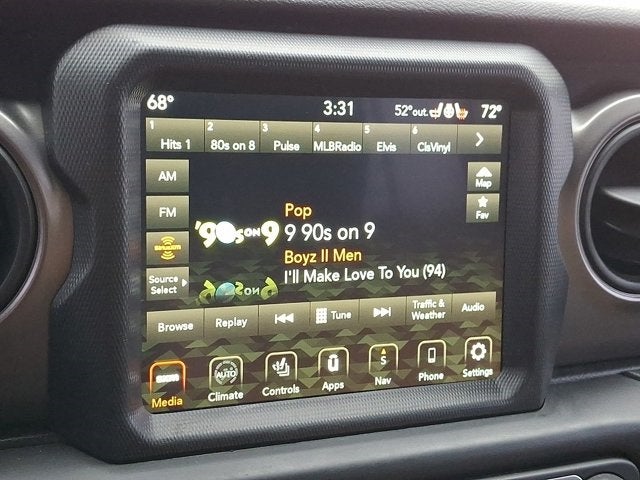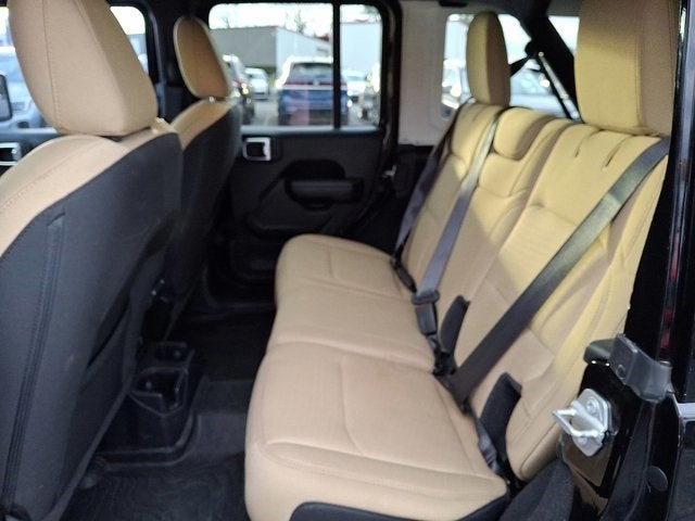 Below is all the standard equipment 8.4 Radio & Premium Audio Group (Alpine Premium Audio System, Auto-Dimming Rear-View Mirror, and Emergency/Assistance Call), Cold Weather Group (Heated Front Seats and Heated Steering Wheel), Convenience Group (Universal Garage Door Opener), LED Headlamp & Fog Lamp Group (Front LED Fog Lamps and LED Premium Reflector Headlamps), Quick Order Package 22W Willys (4-Wheel Drive Swing Gate Decal, Anti-Spin Differential Rear Axle, Automatic Headlamps, Black Grille, Black Trail Rated Badge, Deep Tint Sunscreen Windows, Front 1-Touch Down Power Windows, Leather Wrapped Steering Wheel, Matte Black Jeep Badge, Mold In Color Bumper w/Gloss Black, MOPAR All-Weather Floor Mats, Power Heated Mirrors, Remote Keyless Entry, Security Alarm, Speed Sensitive Power Locks, Sun Visors w/Illuminated Vanity Mirrors, Wheels: 17 x 7.5 Moab Black Aluminum, Willys, Willys Hood Decal, and Wrangler Decal), Sun and Sound Package (115V Auxiliary Power Outlet, Console Bin Task Light, Media Hub-2 USBS (Both Charge Only), Power Top Quarter Window Storage Bag, Rear Window Defroster, Rear Window Wiper/Washer, Remote USB Port - Charge Only, Removable Rear Quarter Windows, and Sky 1-Touch Power Top), Technology Group (7.0 Touchscreen Display, Air Conditioning w/Auto Temperature Control, Air Filtering, Apple CarPlay, Cluster 7.0 TFT Color Display, For More Info, Call 800-643-2112, Google Android Auto, GPS Antenna Input, Integrated Center Stack Radio, Radio: Uconnect 4 w/7 Display, SiriusXM Radio Service, SiriusXM Satellite Radio, and USB Host Flip), 3.45 Rear Axle Ratio, 4-Wheel Disc Brakes, 8 Speakers, ABS brakes, Air Conditioning, AM/FM radio, Aux Battery, Brake assist, Cloth Low-Back Bucket Seats, Compass, Delay-off headlights, Driver door bin, Driver vanity mirror, Dual front impact airbags, Dual front side impact airbags, Electronic Stability Control, Front anti-roll bar, Front Bucket Seats, Front Center Armrest w/Storage, Front fog lights, Front reading lights, Integrated roll-over protection, Low tire pressure warning, Manufacturer's Statement of Origin, MOPAR All-Weather Floor Mats (DISC), Non-Lock Fuel Cap w/o Discriminator, Normal Duty Suspension, Occupant sensing airbag, Outside temperature display, ParkView Rear Back-Up Camera, Passenger door bin, Passenger vanity mirror, Power steering, Radio data system, Radio: Uconnect 3 w/5 Display, Radio: Uconnect 4C Nav w/8.4 Display (DISC), Rear anti-roll bar, Rear reading lights, Speed control, Split folding rear seat, Steering wheel mounted audio controls, Stop-Start Dual Battery System, Tachometer, Telescoping steering wheel, Tilt steering wheel, Traction control, Trip computer, Variably intermittent wipers, and Wheels: 17 x 7.5 Black Steel Styled.