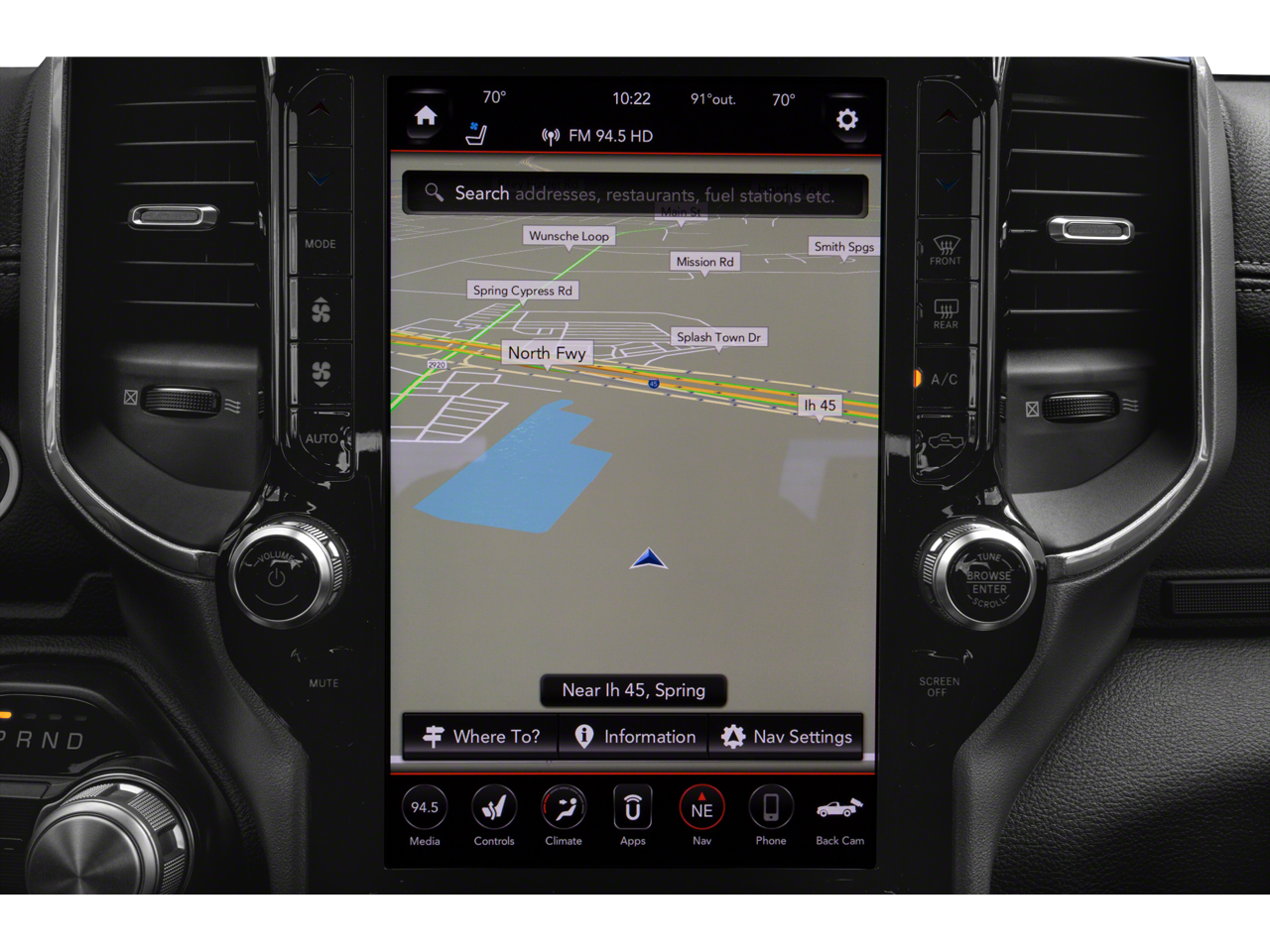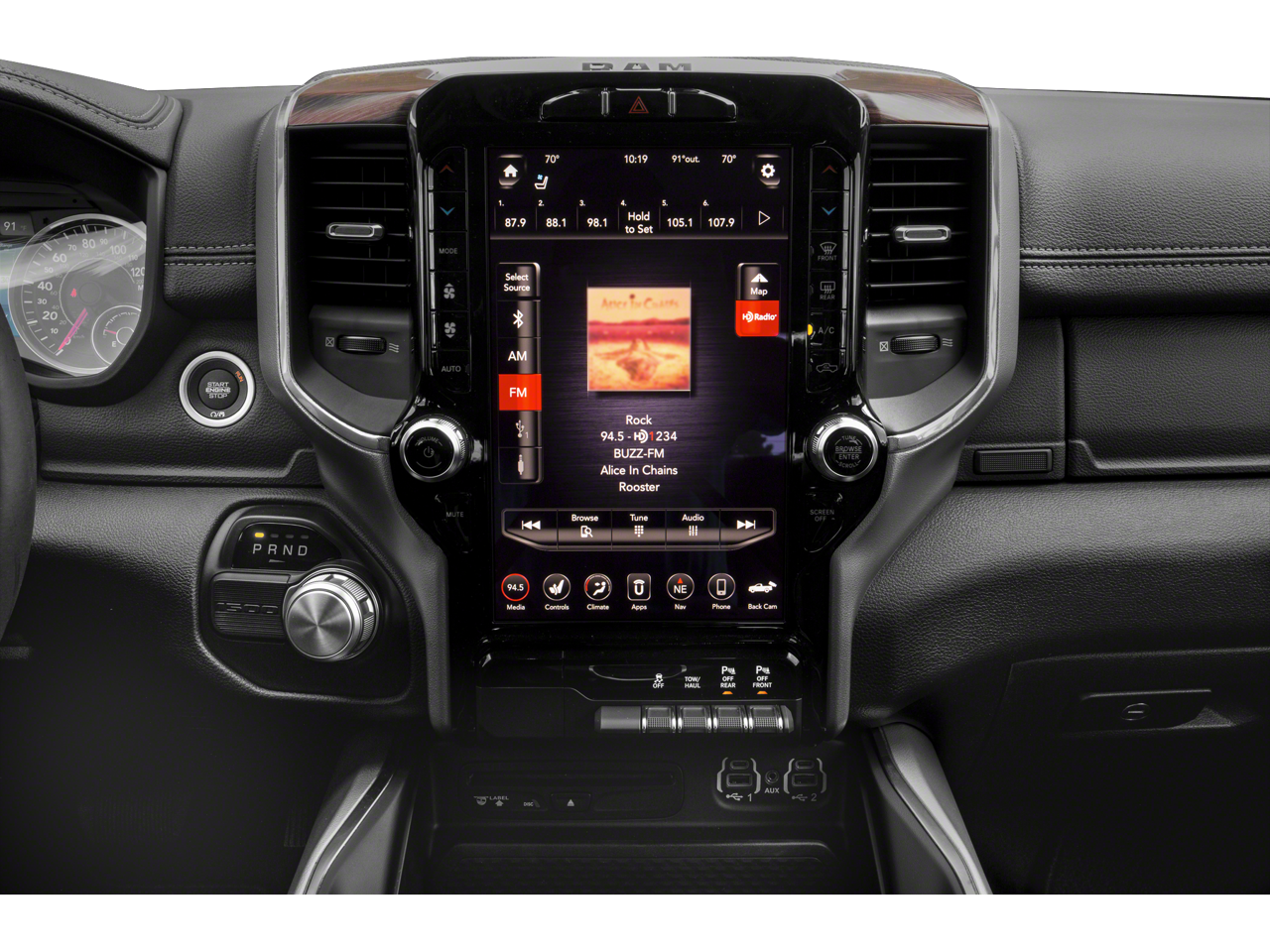Below is all the standard equipment Advanced Safety Group (DISC) (Adaptive Cruise Control w/Stop & Go, Auto High Beam Headlamp Control, Lane Keep Assist, Parallel & Perp Park Assist w/Stop, Pedestrian Emergency Braking, and Surround View Camera System), Bed Utility Group (MOPAR 4 Adjustable Cargo Tie-Down Hooks, MOPAR Deployable Bed Step, MOPAR Spray In Bedliner, and Pick-Up Box Lighting), Cold Weather Group (Engine Block Heater and MOPAR Winter Front Grille Cover), Laramie Level 2 Equipment Group (DISC) (1-Yr SiriusXM Guardian Trial, 4G LTE Wi-Fi Hot Spot, 5-Year SiriusXM Traffic Service, 5-Year SiriusXM Travel Link Service, 8.4 Touchscreen Display, Apple CarPlay, Auto Dimming Exterior Passenger Mirror, Blind Spot & Cross Path Detection, Disassociated Touchscreen Display, Foam Bottle Insert (Door Trim Panel), For Details, Visit DriveUconnect.com, For More Info, Call 800-643-2112, Google Android Auto, GPS Antenna Input, GPS Navigation, harman/kardon 19 Speaker Premium Sound, HD Radio, Heated Second Row Seats, Integrated Center Stack Radio, Integrated Voice Command w/Bluetooth®, ParkSense Front/Rear Park Assist w/Stop, Radio: Uconnect 4C Nav w/8.4 Display, Rain Sensitive Windshield Wipers, Rear 60/40 Folding Split Recline Seat, Rear Underseat Compartment Storage, Remote Tailgate Release, SiriusXM Radio Service, SiriusXM Satellite Radio, SiriusXM Traffic Plus, SiriusXM Travel Link, Tailgate Ajar Warning Lamp, and USB Host Flip), Night Edition (#1 Seat Foam Cushion, 3 Rear Seat Head Restraints, 4 Way Front Headrests, Accent Color Premium Power Mirrors, Black Exterior Truck Badging, Black Headlamp Bezels, Black Interior Accents, Black Painted Exterior Mirrors Caps, Body Color Door Handles, Body Color Front Bumper, Body Color Rear Bumper w/Step Pads, Bucket Seats, Center Console Parts Module, Driver Seat Memory, Dual Exhaust w/Black Tips, Front Seat Back Map Pockets, Full Length Upgraded Floor Console, Grille Surround 3 Black Texture 2 Black, Heated Front Seats, Heated Steering Wheel, Leather Trimmed Bucket Seats, Mopar Black Tubular Side Steps, Power 4-Way Driver Lumbar Adjust, Power 4-Way Passenger Lumbar Adjust, Power 8-Way Driver & Passenger Seats, Sport Performance Hood, and Ventilated Front Seats), Protection Group (Tow Hooks), Quick Order Package 28H Laramie, Technology Group (DISC) (Heads-Up Display, LED CHMSL Lamp, and Rearview Autodim Digital Display Mirror), Trailer Tow Group (DISC) (Trailer Brake Control, Trailer Light Check, Trailer Reverse Steering Control, and Trailer Tire Pressure Monitoring System), 10 Speakers, 12 Touchscreen Display, 4-Corner Air Suspension, 4-Wheel Disc Brakes, 48V Belt Starter Generator, Air Suspension Decal, AM/FM radio: SiriusXM, Anti-Spin Differential Rear Axle, Apple CarPlay/Android Auto, Auto-dimming door mirrors, Auto-dimming Rear-View mirror, Automatic temperature control, Black Exterior Mirrors, Black Power-Fold Trai