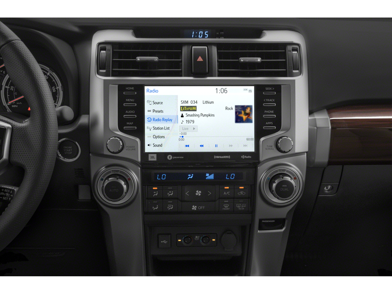 Below is all the standard equipment 4WD, Sand Beige w/Leather Seat Trim, Navigation System, 15 Speakers, 20 x 7.5 Unique Dual 6-Spoke Alloy Wheels, 3.727 Axle Ratio, 4-Wheel Disc Brakes, ABS brakes, Air Conditioning, Alloy wheels, AM/FM radio: SiriusXM, Anti-whiplash front head restraints, Apple CarPlay/Android Auto, Auto High-beam Headlights, Auto-dimming Rear-View mirror, Automatic temperature control, Body Color Heated Mirrors, Brake assist, Bumpers: body-color, Compass, Delay-off headlights, Driver door bin, Driver vanity mirror, Dual front impact airbags, Dual front side impact airbags, Electronic Stability Control, Emergency communication system: Safety Connect with 1-year trial, Exterior Parking Camera Rear, Front anti-roll bar, Front Bucket Seats, Front Center Armrest, Front dual zone A/C, Front fog lights, Front reading lights, Front wheel independent suspension, Fully automatic headlights, Garage Door Opener, Garage door transmitter: HomeLink, Heated door mirrors, Heated front seats, Heated/Ventilated Front Bucket Seats, Illuminated entry, Knee airbag, Leather Seat Trim, Low tire pressure warning, Memory seat, Moonroof w/Tilt Up & Slide, Occupant sensing airbag, Outside temperature display, Overhead airbag, Overhead console, Panic alarm, Passenger door bin, Passenger vanity mirror, Power door mirrors, Power driver seat, Power moonroof, Power passenger seat, Power steering, Power windows, Radio: Premium JBL Audio, Rear anti-roll bar, Rear seat center armrest, Rear window defroster, Rear window wiper, Remote keyless entry, Right & Left Individual Air Conditioner, Roof rack: rails only, Security system, Speed control, Speed-sensing steering, Split folding rear seat, Spoiler, Steering wheel mounted audio controls, Tachometer, Telescoping steering wheel, Tilt steering wheel, Traction control, Trip computer, Turn signal indicator mirrors, Variably intermittent wipers, and Ventilated front seats.