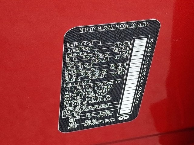 Below is all the standard equipment ProACTIVE Package (Direct Adaptive Steering, Head-Up Display, Intelligent Cruise Control (Full-Speed Range), ProPILOT Assist, Steering Assist, and Traffic Sign Recognition), ProASSIST Package (Adaptive Front Lighting System, Blind Spot Intervention, Cube Design LED Headlights, Distance Control Assist, Intelligent Cruise Control, and Lane Departure Prevention), 16 Speakers, 4-Wheel Disc Brakes, 5.846 Axle Ratio, ABS brakes, Air Conditioning, Alloy wheels, AM/FM radio: SiriusXM, Auto High-beam Headlights, Auto tilt-away steering wheel, Auto-dimming Rear-View mirror, Automatic temperature control, Black Splash Guards (Set of 4), Blind Spot Warning, Brake assist, Bumpers: body-color, Carpeted Floor Mats, CD player, Climate Controlled Front Bucket Seats, Delay-off headlights, Driver door bin, Driver vanity mirror, Dual front impact airbags, Dual front side impact airbags, Electronic Stability Control, Emergency communication system: INFINITI InTouch, Exclusive Paint, Four wheel independent suspension, Front anti-roll bar, Front Bucket Seats, Front Center Armrest, Front dual zone A/C, Front fog lights, Front reading lights, Fully automatic headlights, Garage door transmitter: HomeLink, Heated door mirrors, Heated front seats, Heated steering wheel, Illuminated entry, Illuminated Kick Plates, Knee airbag, Leather Shift Knob, Leather-Appointed Seat Trim, Low tire pressure warning, Memory seat, Navigation system: INFINITI InTouch Navigation, Occupant sensing airbag, Outside temperature display, Overhead airbag, Overhead console, Panic alarm, Passenger door bin, Passenger vanity mirror, Power door mirrors, Power driver seat, Power Liftgate, Power moonroof, Power passenger seat, Power steering, Power windows, Radio data system, Radio: Bose Performance Series Premium Audio, Rain sensing wipers, Rear anti-roll bar, Rear reading lights, Rear seat center armrest, Rear window defroster, Rear window wiper, Remote keyless entry, Security system, Speed control, Speed-sensing steering, Speed-Sensitive Wipers, Split folding rear seat, Spoiler, Steering wheel memory, Steering wheel mounted audio controls, Tachometer, Telescoping steering wheel, Tilt steering wheel, Traction control, Trip computer, Turn signal indicator mirrors, Variably intermittent wipers, Ventilated front seats, and Wheels: 20 x 8.5 Machine Finish Aluminum Alloy.