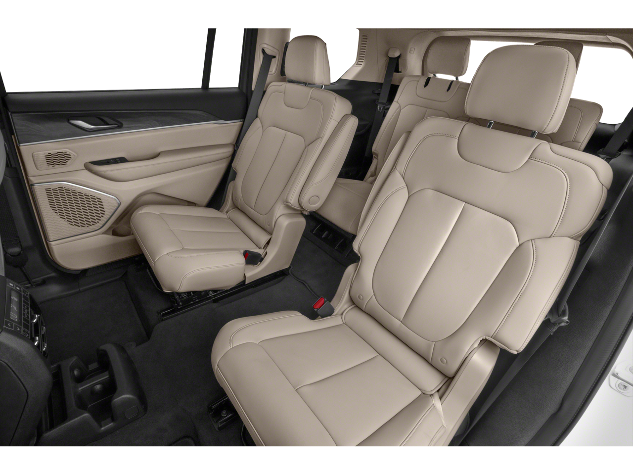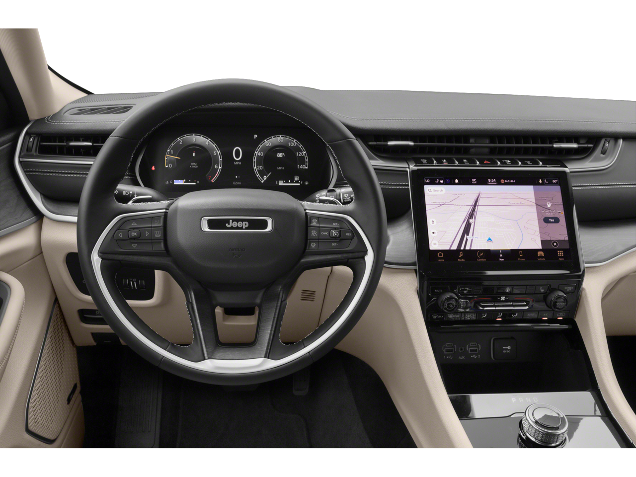 Below is all the standard equipment Quick Order Package 22E, 10.1 Touchscreen Display, 3.45 Rear Axle Ratio, 3rd row seats: split-bench, 4-Wheel Disc Brakes, 4G LTE Wi-Fi Hot Spot, 506 Watt Amplifier, 6 Speakers, 9 Amplified Speakers w/Subwoofer, ABS brakes, Active Noise Control System, Air Conditioning, All Radio Equipped Vehicles, Alloy wheels, AM/FM radio: SiriusXM with 360L, Anti-whiplash front head restraints, Apple CarPlay, Audio memory, Auto High-beam Headlights, Automatic temperature control, Brake assist, Bumpers: body-color, Capri Leather Seats, Compass, Connected Travel & Traffic Services, Connectivity - US/Canada, Delay-off headlights, Disassociated Touchscreen Display, Driver door bin, Driver vanity mirror, Dual front impact airbags, Dual front side impact airbags, Dual-Pane Panoramic Sunroof, Electronic Stability Control, Emergency communication system, For Details, Visit DriveUconnect.com, For More Info, Call 800-643-2112, Four wheel independent suspension, Front anti-roll bar, Front Bucket Seats, Front Center Armrest w/Storage, Front dual zone A/C, Front fog lights, Front reading lights, Fully automatic headlights, Garage door transmitter, Global Telematics Box Module (TBM), Google Android Auto, GPS Antenna Input, GPS Navigation, HD Radio, Heated door mirrors, Heated front seats, Heated rear seats, Heated steering wheel, Illuminated entry, Integrated Center Stack Radio, Integrated Voice Command w/Bluetooth®, Interior Rear Facing Camera, Knee airbag, Leather steering wheel, Low tire pressure warning, Manual Fold Seatbacks, Memory seat, Normal Duty Suspension, Occupant sensing airbag, Outside temperature display, Overhead airbag, Overhead console, Panic alarm, ParkView Rear Back-Up Camera, Passenger door bin, Passenger vanity mirror, Power door mirrors, Power driver seat, Power Liftgate, Power passenger seat, Power steering, Power windows, Radio data system, Radio: Uconnect 5 Nav w/10.1 Display, Radio: Uconnect 5 w/8.4 Display, Rear air conditioning, Rear anti-roll bar, Rear reading lights, Rear window defroster, Rear window wiper, Reclining 3rd row seat, Remote keyless entry, Security system, SiriusXM Radio Service, SiriusXM Satellite Radio, SiriusXM w/360L, Speed control, Speed-Sensitive Wipers, Split folding rear seat, Spoiler, Steering wheel mounted audio controls, Tachometer, Telescoping steering wheel, Tilt steering wheel, Traction control, Trip computer, Turn signal indicator mirrors, USB Host Flip, Variably intermittent wipers, Voltmeter, Wheels: 18 x 8.0 Fully Painted Aluminum 2, and Wheels: 20 x 8.5 Polished/Painted AluminuM.