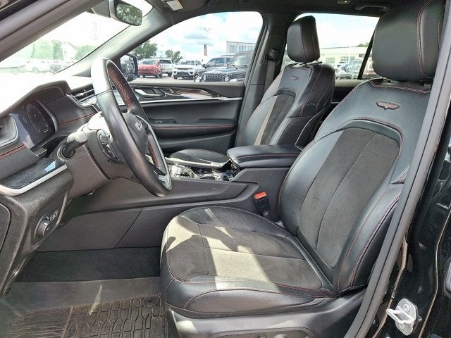 Below is all the standard equipment Quick Order Package 22J, FCA US LLC Certified Pre-Owned Certified, 4WD, 10 Speakers, 10.1 Touchscreen Display, 3.45 Rear Axle Ratio, 4-Wheel Disc Brakes, 4G LTE Wi-Fi Hotspot, ABS brakes, Adaptive suspension, Air Conditioning, All Radio Equipped Vehicles, Alloy wheels, AM/FM radio: SiriusXM with 360L, Anti-whiplash front head restraints, Apple CarPlay, Audio memory, Auto High-beam Headlights, Auto-dimming door mirrors, Auto-dimming Rear-View mirror, Auto-leveling suspension, Automatic temperature control, Brake assist, Bumpers: body-color, Capri Leather/Suede Seats, Compass, Connected Travel & Traffic Services, Connectivity - US/Canada, Delay-off headlights, Disassociated Touchscreen Display, Driver door bin, Driver vanity mirror, Dual front impact airbags, Dual front side impact airbags, Electronic Stability Control, Emergency communication system, For Details, Visit DriveUconnect.com, For More Info, Call 800-643-2112, Four wheel independent suspension, Front anti-roll bar, Front Bucket Seats, Front Center Armrest w/Storage, Front dual zone A/C, Front fog lights, Front reading lights, Fully automatic headlights, Garage door transmitter, Global Telematics Box Module (TBM), Google Android Auto, GPS Antenna Input, GPS Navigation, HD Radio, Heated door mirrors, Heated front seats, Heated rear seats, Heated steering wheel, Illuminated entry, Integrated Center Stack Radio, Integrated Voice Command w/Bluetooth®, Knee airbag, Leather Shift Knob, Leather steering wheel, Low tire pressure warning, Memory seat, Navigation System, Normal Duty Suspension, Occupant sensing airbag, Outside temperature display, Overhead airbag, Overhead console, Panic alarm, Passenger door bin, Passenger vanity mirror, Power door mirrors, Power driver seat, Power Liftgate, Power passenger seat, Power steering, Power windows, Radio data system, Radio: Uconnect 5 Nav w/10.1 Display, Radio: Uconnect 5 Nav w/8.4 Display, Rear anti-roll bar, Rear reading lights, Rear seat center armrest, Rear window defroster, Rear window wiper, Remote keyless entry, Roof rack: rails only, Security system, SiriusXM Radio Service, SiriusXM Satellite Radio, Si