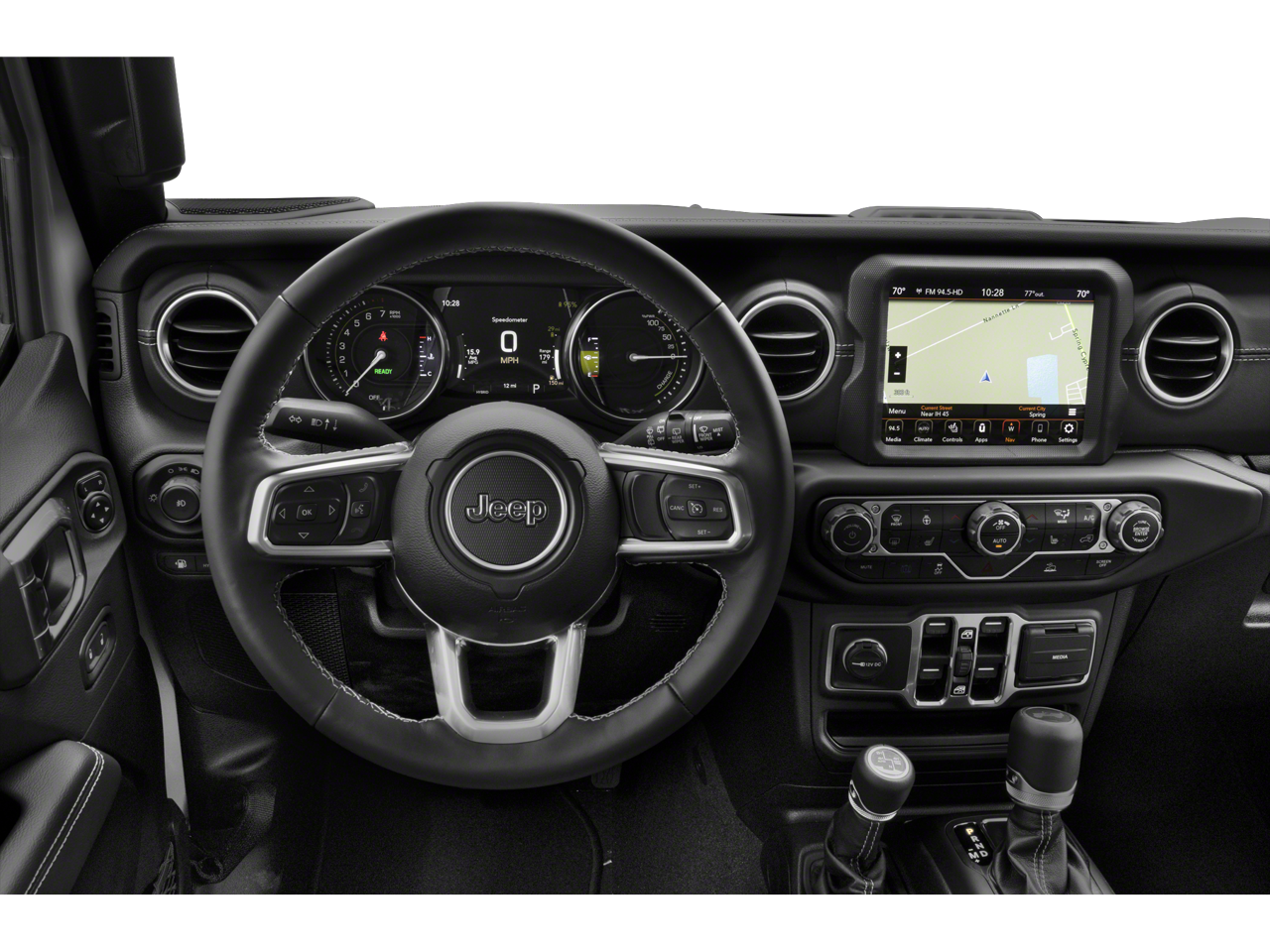 Below is all the standard equipment Cold Weather Group (Heated Front Seats, Heated Steering Wheel, and Remote Start System), Quick Order Package 29P, Safety Group (Blind Spot & Cross Path Detection and ParkSense Rear Park Assist System), 2.0L I4 DOHC, 3.73 Rear Axle Ratio, 4-Wheel Disc Brakes, 9 Speakers, ABS brakes, Air Conditioning, Alloy wheels, AM/FM radio, Apple CarPlay/Android Auto, Auto-dimming Rear-View mirror, Automatic temperature control, Black 3-Piece Hard Top, Brake assist, Compass, Delay-off headlights, Driver door bin, Driver vanity mirror, Dual front impact airbags, Dual front side impact airbags, Electronic Stability Control, Emergency communication system: SiriusXM Guardian, Freedom Panel Storage Bag, Front anti-roll bar, Front Bucket Seats, Front Center Armrest w/Storage, Front dual zone A/C, Front fog lights, Front License Plate Bracket, Front reading lights, Fully automatic headlights, Garage door transmitter, Heated door mirrors, Illuminated entry, Integrated roll-over protection, Leather Shift Knob, Leather steering wheel, Low tire pressure warning, Mopar Black Tubular Side Steps, Navigation System, No Soft Top, Occupant sensing airbag, Outside temperature display, Panic alarm, ParkView Rear Back-Up Camera, Passenger door bin, Passenger vanity mirror, Power door mirrors, Power steering, Power windows, Premium McKinley Trimmed Seats, Radio data system, Radio: Uconnect 4C Nav w/8.4 Display, Rear anti-roll bar, Rear reading lights, Rear seat center armrest, Rear Window Defroster, Rear Window Wiper/Washer, Remote keyless entry, Security system, Speed control, Split folding rear seat, Sport Suspension, Steering wheel mounted audio controls, Tachometer, Telescoping steering wheel, Tilt steering wheel, Traction control, Trip computer, Variably intermittent wipers, Voltmeter, and Wheels: 20 x 8 Fully Painted Aluminum.