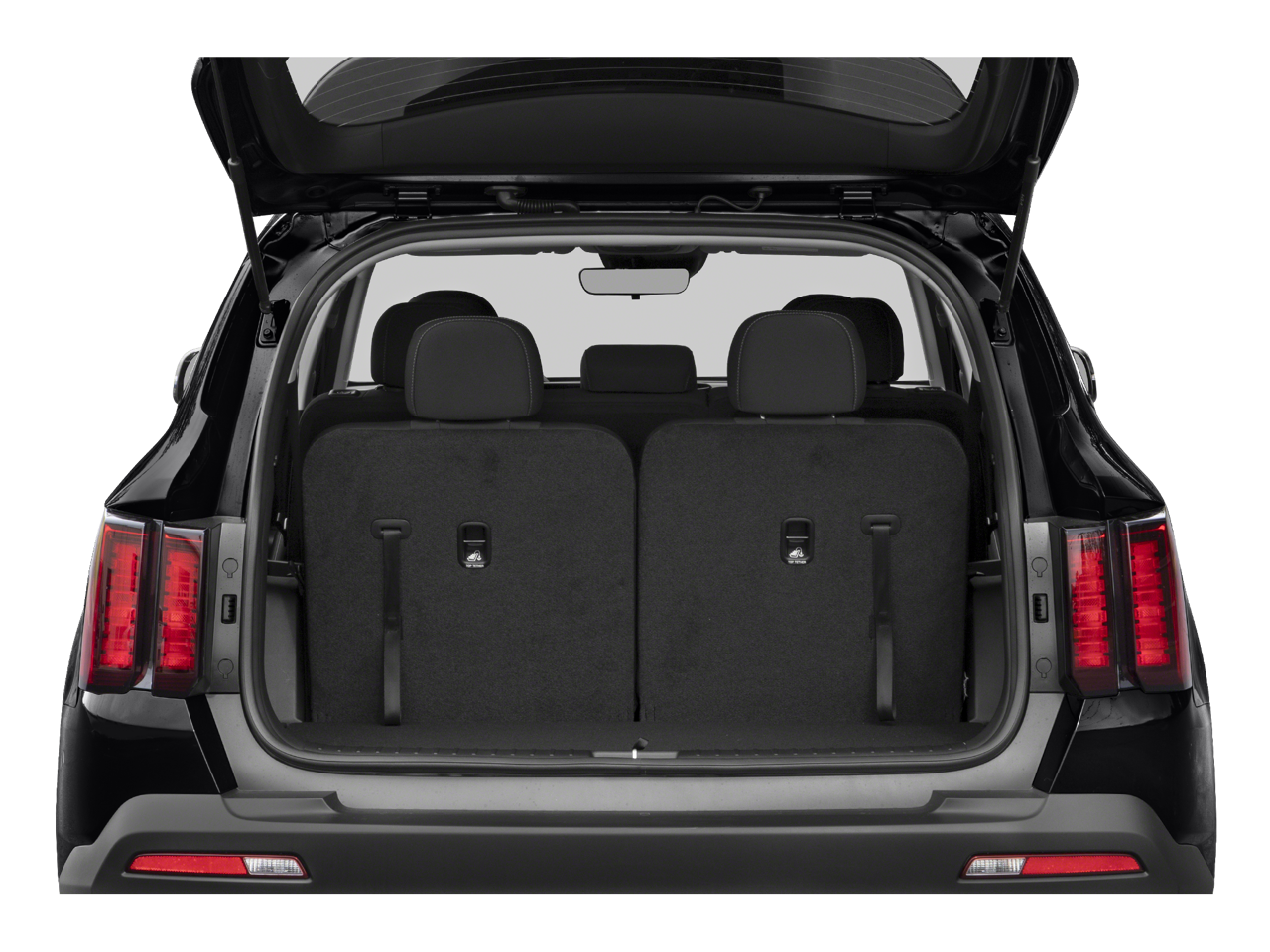 Below is all the standard equipment AWD, Front Bucket Seats, 3rd row seats: split-bench, 4-Wheel Disc Brakes, 4.081 Axle Ratio, 6 Speakers, 7.0J x 17 Alloy Wheels, ABS brakes, Air Conditioning, Alloy wheels, AM/FM radio, Apple CarPlay & Android Auto, Auto High-beam Headlights, Brake assist, Bumpers: body-color, Carpeted Floor Mats, Cloth Seat Trim, Delay-off headlights, Driver door bin, Driver vanity mirror, Dual front impact airbags, Dual front side impact airbags, Electronic Stability Control, Exterior Parking Camera Rear, Four wheel independent suspension, Front anti-roll bar, Front Center Armrest, Front reading lights, Fully automatic headlights, Heated door mirrors, Illuminated entry, Knee airbag, Low tire pressure warning, Occupant sensing airbag, Outside temperature display, Overhead airbag, Overhead console, Panic alarm, Passenger door bin, Passenger vanity mirror, Power door mirrors, Power steering, Power windows, Radio data system, Radio: AM/FM Audio System, Rear anti-roll bar, Rear reading lights, Rear seat center armrest, Rear window defroster, Rear window wiper, Remote keyless entry, Security system, Speed control, Speed-sensing steering, Split folding rear seat, Spoiler, Steering wheel mounted audio controls, Tachometer, Telescoping steering wheel, Tilt steering wheel, Traction control, Trip computer, Turn signal indicator mirrors, and Variably intermittent wipers.