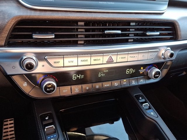 Below is all the standard equipment Nightfall Edition Package (Black Finish Radiator Grille, Body Color Exterior Door Handles, Exclusive Black Fog Light Bezel, Exclusive Black Headlight Bezels, Front & Rear Gloss Black Finish Bumper Skid Plates, Gloss Black Finish Exterior Emblems, Gloss Black Finish Front & Rear Door Garnish, Gloss Black Finish Roof Rails, and Wheels: 20 x 7.5 Exclusive Black Alloy), SX Prestige Package (110V Inverter, Heads-Up Display, Heated & Ventilated 2nd Row Seats, Premium Cloth Headliner & Pillar Trim, Premium Nappa Leather Seat Trim, and Rain-Sensing Front Windshield Wipers), 10 Speakers, 3.648 Axle Ratio, 3rd row seats: split-bench, 4-Wheel Disc Brakes, ABS brakes, Air Conditioning, Alloy wheels, AM/FM radio: SiriusXM, Apple CarPlay & Android Auto, Auto High-beam Headlights, Auto-dimming Rear-View mirror, Automatic temperature control, Brake assist, Bumpers: body-color, Compass, Cross Bars, Delay-off headlights, Driver door bin, Driver vanity mirror, Dual front impact airbags, Dual front side impact airbags, Electronic Stability Control, Emergency communication system: 911 Connect, Four wheel independent suspension, Front anti-roll bar, Front Bucket Seats, Front Center Armrest, Front dual zone A/C, Front fog lights, Front reading lights, Fully automatic headlights, Garage door transmitter: HomeLink, harman/kardon® Speakers, Heated & Ventilated Front Bucket Seats, Heated door mirrors, Heated front seats, Heated steering wheel, Illuminated entry, Knee airbag, Leather Seat Trim, Leather Shift Knob, Leather steering wheel, Low tire pressure warning, Memory seat, Navigation System, Occupant sensing airbag, Outside temperature display, Overhead airbag, Overhead console, Panic alarm, Passenger door bin, Passenger vanity mirror, Power door mirrors, Power driver seat, Power Liftgate, Power moonroof, Power passenger seat, Power steering, Power windows, Radio data system, Radio: AM/FM harman/kardon Audio System, Rear air conditioning, Rear anti-roll bar, Rear audio controls, Rear reading lights, Rear window defroster, Rear window wiper, Reclining 3rd row seat, Remote keyless entry, Roof rack: rails only, Security system, Smart Key w/ Push Button and Remote Start, Speed control, Speed-sensing steering, Split folding rear seat, Spoiler, Steering wheel mounted audio controls, SX Dune Brown Nappa Leather Seats, Tachometer, Telescoping steering wheel, Tilt steering wheel, Traction control, Trip computer, Turn signal indicator mirrors, Variably intermittent wipers, Ventilated front seats, and Wheels: 20 x 7.5 Black Alloy.