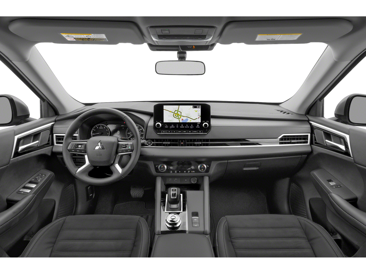 Below is all the standard equipment 4WD, 3rd row seats: split-bench, 4-Wheel Disc Brakes, ABS brakes, Air Conditioning, Alloy wheels, AM/FM radio: SiriusXM, Android Auto & Apple CarPlay, Auto High-beam Headlights, Automatic temperature control, Axle Ratio: 5.694, Brake assist, Bumpers: body-color, Driver door bin, Driver vanity mirror, Dual front impact airbags, Dual front side impact airbags, Electronic Stability Control, Emergency communication system: Mitsubishi Connect w/ 24-month trial, Four wheel independent suspension, Front anti-roll bar, Front Bucket Seats, Front Center Armrest w/Storage, Front dual zone A/C, Front fog lights, Front reading lights, Fully automatic headlights, Headlight cleaning, Heated door mirrors, Heated Front Bucket Seats, Heated front seats, Illuminated entry, Knee airbag, Leather Shift Knob, Leather steering wheel, Low tire pressure warning, Navigation system: Powered by TOMTOM, Occupant sensing airbag, Outside temperature display, Overhead airbag, Overhead console, Panic alarm, Passenger door bin, Passenger vanity mirror, Power door mirrors, Power driver seat, Power Liftgate, Power steering, Power windows, Radio data system, Radio: AM/FM 9.0 Navigation w/Smartphone Link, Rain sensing wipers, Rear anti-roll bar, Rear seat center armrest, Rear side impact airbag, Rear window defroster, Rear window wiper, Reclining 3rd row seat, Remote keyless entry, Security system, Speed control, Speed-Sensitive Wipers, Split folding rear seat, Spoiler, Steering wheel mounted audio controls, Synthetic Leather Seat Trim, Tachometer, Telescoping steering wheel, Tilt steering wheel, Traction control, Trip computer, Turn signal indicator mirrors, Variably intermittent wipers, and Wheels: 20 x 8J Two-Tone Alloy.