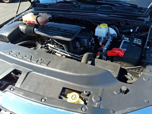 Below is all the standard equipment Bed Utility Group (MOPAR 4 Adjustable Cargo Tie-Down Hooks, MOPAR Deployable Bed Step, MOPAR Spray In Bedliner, and Pick-Up Box Lighting), Big Horn Level An Equipment Group (DISC) (2nd Row In Floor Storage Bins, 4G LTE Wi-Fi Hot Spot, 8.4 Touchscreen Display, Apple CarPlay, Auto-Dimming Exterior Driver Mirror, Auto-Dimming Rear-View Mirror, Black Premium Power Mirrors (GUL), Bluetooth® Handsfree Phone & Audio, Class IV Receiver Hitch, Cluster 3.5 TFT Color Display, Connectivity - US/Canada, Exterior Mirrors Courtesy Lamps, Exterior Mirrors w/Supplemental Signals, Foam Bottle Insert (Door Trim Panel), For More Info, Call 800-643-2112, Glove Box Lamp, Google Android Auto, Integrated Center Stack Radio, Power 2-Way Driver Lumbar Adjust, Power 8-Way Driver Seat, Power Adjustable Pedals, Radio: Uconnect 5 W w/8.4 Display, Rear Dome w/On/Off Switch Lamp, Rear Power Sliding Window, Rear Underseat Compartment Storage, Rear Window Defroster, SiriusXM Radio Service, SiriusXM Satellite Radio, Sun Visors w/Illuminated Vanity Mirrors, Universal Garage Door Opener, and USB Host Flip), Quick Order Package 23Z Big Horn (Big Horn Badge), Certified Pre-Owned Certified, Remote Start System, Wheels: 18 x 8 Cast-Aluminum Painted, 3 Rear Seat Head Restraints, 3.21 Rear Axle Ratio, 4 Way Front Headrests, 4-Wheel Disc Brakes, 48V Belt Starter Generator, 6 Speakers, ABS brakes, Air Conditioning, Alloy wheels, AM/FM radio, Black Exterior Mirrors, Brake assist, Bumpers: chrome, Cloth Bench Seat, Cluster 7.0 TFT Color Display, Compass, Convex Wide-Angle Mirror Insert, Delay-off headlights, Driver door bin, Dual front impact airbags, Dual front side impact airbags, Electronic Stability Control, Emergency communication system: SiriusXM Guardian, Front anti-roll bar, Front Center Armrest w/Storage, Front fog lights, Front License Plate Bracket, Front reading lights, Front Seat Back Map Pockets, Front wheel independent suspension, Fully automatic headlights, Global Telematics Box Module (TBM), GPS Antenna Input, Heated door mirrors, Illuminated entry, Integrated Voice Command w/Bluetooth®, Leather steering wheel, Low tire pressure warning, Manufacturer's Statement of Origin, MOPAR Front & Rear Rubber Floor Mats, Occupant sensing airbag, Outside temperature display, Overhead airbag, Overhead console, Panic alarm, ParkView Rear Back-Up Camera, Passenger door bin, Passenger vanity mirror, Power door mirrors, Power steering, Power windows, Radio data system, Radio: Uconnect 3 w/5 Display, Rear 60/40 Folding Seat, Rear anti-roll bar, Rear seat center armrest, Rear step bumper, Rear Underseat Compartment Storage (DISC), Rear Wheelhouse Liners, Remote keyless entry, Speed control, Split folding rear seat, Steering wheel mounted audio controls, Tachometer, Telescoping steering wheel, Tilt steering wheel, Tr