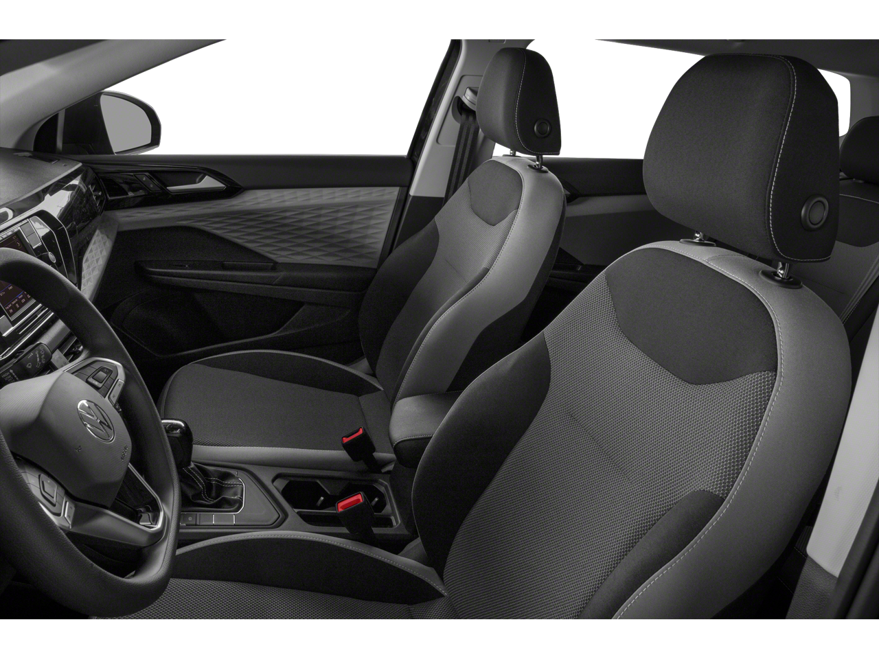 2022 Volkswagen Taos 1.5T S in Pure White with Gray/Black Cloth.