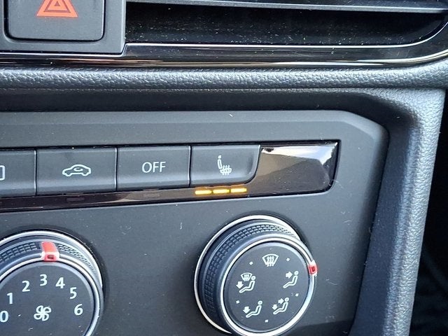 Below is all the standard equipment Convenience Features (Automatic Rain-Sensing Front Wipers, Heated Steering Wheel, and Light Assist (High Beam Control)), Driver Assistance Package (Adaptive Cruise Control (ACC) w/Stop & Go, Emergency Assist, Lane Assist (Lane Keeping System), and Travel Assist (Semi-Automated Driving Assistance)), Volkswagen Certified Pre-Owned Certified, 4-Wheel Disc Brakes, 5.20 Axle Ratio, 6 Speakers, ABS brakes, Air Conditioning, Alloy wheels, AM/FM radio: SiriusXM with 360L, Brake assist, Bumpers: body-color, CloudTex & Cloth Seating Surfaces, Compass, Delay-off headlights, Driver door bin, Driver vanity mirror, Dual front impact airbags, Dual front side impact airbags, Electronic Stability Control, Emergency communication system: Car-Net, Exterior Parking Camera Rear, Four wheel independent suspension, Front anti-roll bar, Front Assist, Front Bucket Seats, Front Center Armrest, Front reading lights, Front Strut Rear Multi-Link Suspension, Fully automatic headlights, Heated door mirrors, Heated Front Comfort Seats, Heated front seats, Illuminated entry, Leather Shift Knob, Low tire pressure warning, Occupant sensing airbag, Outside temperature display, Overhead airbag, Overhead console, Panic alarm, Passenger door bin, Passenger vanity mirror, Power door mirrors, Power driver seat, Power steering, Power windows, Radio data system, Radio: MIB3 Composition Media AM/FM/HD, Rear anti-roll bar, Rear seat center armrest, Rear Traffic Alert, Rear window defroster, Rear window wiper, Remote keyless entry, Roof rack: rails only, Security system, Speed control, Speed-sensing steering, Split folding rear seat, Spoiler, Steering wheel mounted audio controls, Tachometer, Telescoping steering wheel, Tilt steering wheel, Traction control, Trip computer, Variably intermittent wipers, and Wheels: 18 2-Tone Machined Alloy.
