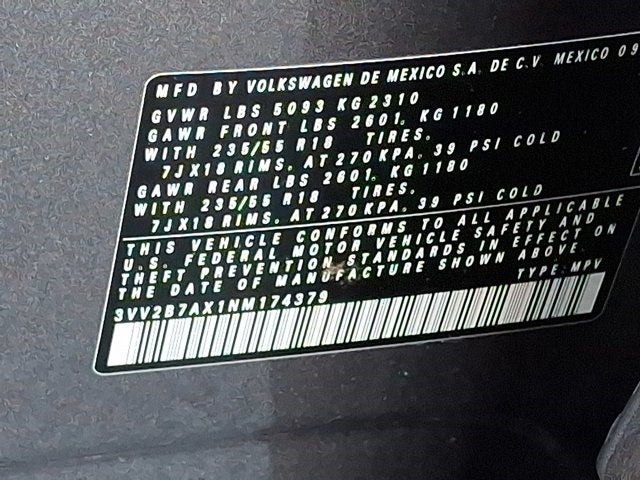 Below is all the standard equipment Panoramic Sunroof Package, Volkswagen Certified Pre-Owned Certified, AWD, 3.33 Axle Ratio, 4-Wheel Disc Brakes, 4-Wheel Independent Suspension, 6 Speakers, ABS brakes, Air Conditioning, Alloy wheels, AM/FM radio: SiriusXM with 360L, Auto-dimming Rear-View mirror, Automatic temperature control, Brake assist, Bumpers: body-color, Compass, Delay-off headlights, Driver door bin, Driver vanity mirror, Dual front impact airbags, Dual front side impact airbags, Electronic Stability Control, Emergency communication system: Car-Net, Exterior Parking Camera Rear, Four wheel independent suspension, Front anti-roll bar, Front Bucket Seats, Front Center Armrest, Front dual zone A/C, Front reading lights, Fully automatic headlights, Heated door mirrors, Heated Front Comfort Seats, Heated front seats, Illuminated entry, Leather Shift Knob, Low tire pressure warning, Occupant sensing airbag, Outside temperature display, Overhead airbag, Overhead console, Panic alarm, Passenger door bin, Passenger vanity mirror, Perforated V-Tex Leatherette Seating Surfaces, Power door mirrors, Power driver seat, Power Liftgate, Power steering, Power windows, Radio data system, Radio: MIB3 Composition Media AM/FM/HD, Rain sensing wipers, Rear anti-roll bar, Rear reading lights, Rear seat center armrest, Rear window defroster, Rear window wiper, Remote keyless entry, Roof rack: rails only, Security system, Speed control, Speed-sensing steering, Split folding rear seat, Spoiler, Steering wheel mounted audio controls, Tachometer, Telescoping steering wheel, Tilt steering wheel, Traction control, Trip computer, Turn signal indicator mirrors, Variably intermittent wipers, and Wheels: 18 Dark Graphite 10-Spoke Alloy.