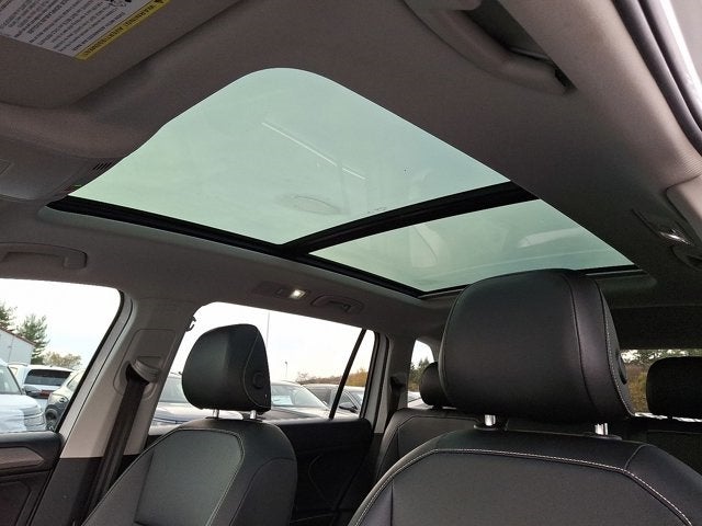 Below is all the standard equipment Panoramic Sunroof Package, Volkswagen Certified Pre-Owned Certified, AWD, 3.33 Axle Ratio, 4-Wheel Disc Brakes, 4-Wheel Independent Suspension, 6 Speakers, ABS brakes, Air Conditioning, Alloy wheels, AM/FM radio: SiriusXM with 360L, Auto-dimming Rear-View mirror, Automatic temperature control, Brake assist, Bumpers: body-color, Compass, Delay-off headlights, Driver door bin, Driver vanity mirror, Dual front impact airbags, Dual front side impact airbags, Electronic Stability Control, Emergency communication system: Car-Net, Exterior Parking Camera Rear, Four wheel independent suspension, Front anti-roll bar, Front Bucket Seats, Front Center Armrest, Front dual zone A/C, Front reading lights, Fully automatic headlights, Heated door mirrors, Heated Front Comfort Seats, Heated front seats, Illuminated entry, Leather Shift Knob, Low tire pressure warning, Occupant sensing airbag, Outside temperature display, Overhead airbag, Overhead console, Panic alarm, Passenger door bin, Passenger vanity mirror, Perforated V-Tex Leatherette Seating Surfaces, Power door mirrors, Power driver seat, Power Liftgate, Power steering, Power windows, Radio data system, Radio: MIB3 Composition Media AM/FM/HD, Rain sensing wipers, Rear anti-roll bar, Rear reading lights, Rear seat center armrest, Rear window defroster, Rear window wiper, Remote keyless entry, Roof rack: rails only, Security system, Speed control, Speed-sensing steering, Split folding rear seat, Spoiler, Steering wheel mounted audio controls, Tachometer, Telescoping steering wheel, Tilt steering wheel, Traction control, Trip computer, Turn signal indicator mirrors, Variably intermittent wipers, and Wheels: 18 Dark Graphite 10-Spoke Alloy.