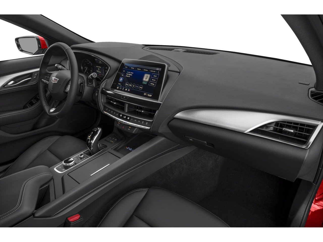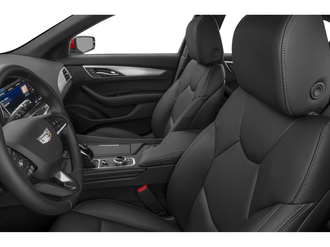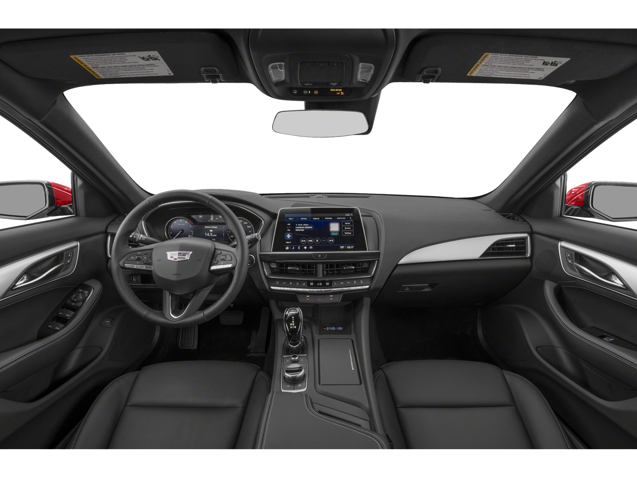 Below is all the standard equipment Navigation & Bose Premium Audio Package, Radio: Cadillac User Experience w/Embedded Nav (Bose Performance Series Premium 15-Speaker System and SiriusXM w/360L), Navigation System, UltraView Dual Pane Sunroof, 3 USB Ports, 4-Wheel Disc Brakes, 9 Speakers, ABS brakes, Air Conditioning, Alloy wheels, AM/FM radio: SiriusXM with 360L, Apple CarPlay/Android Auto, Auto High-beam Headlights, Auto-dimming door mirrors, Auto-dimming Rear-View mirror, Automatic Stop/Start w/Disable, Automatic temperature control, Body-Color Heated Pwr-Adjustable Outside Mirrors, Brake assist, Bumpers: body-color, Compass, Delay-off headlights, Driver 4-Way Power Lumbar Seat Adjuster, Driver door bin, Driver vanity mirror, Dual Diagonal Color Driver Information Center, Dual front impact airbags, Dual front side impact airbags, Electronic Stability Control, Emergency communication system: OnStar and Cadillac connected services capable, Exterior Parking Camera Rear, Four wheel independent suspension, Front & Rear Park Assist, Front anti-roll bar, Front Bucket Seats, Front Center Armrest, Front dual zone A/C, Front Passenger 4-Way Power Lumbar Seat Adjuster, Front Passenger 8-Way Power Seat Adjuster, Front reading lights, Fully automatic headlights, Garage door transmitter, HD Radio, HD Rear Vision Camera, Heated door mirrors, Heated Driver & Front Passenger Seats, Heated Steering Wheel, Illuminated entry, Inside Rear-View Auto-Dimming Mirror, Knee airbag, Lane Keep Assist w/Lane Departure Warning, Leather Seating Surfaces, Leather steering wheel, LED Reflective Windshield Alert, Low tire pressure warning, Memory seat, Occupant sensing airbag, Outside temperature display, Overhead airbag, Overhead console, Panic alarm, Passenger door bin, Passenger vanity mirror, Power door mirrors, Power driver seat, Power passenger seat, Power steering, Power windows, Premium 9-Speaker Audio System Feature, Radio data system, Radio: Cadillac User Experience, Rain sensing wipers, Rear anti-roll bar, Rear reading lights, Rear seat center armrest, Rear window defroster, Remote keyless entry, Speed control, Speed-sensing steering, Split folding rear seat, Steering wheel memory, Steering wheel mounted audio controls, Steering Wheel Mounted Paddle Shift Controls, Tachometer, Teen Driver, Telescoping steering wheel, Tilt steering wheel, Traction control, Trip computer, Turn signal indicator mirrors, Variably intermittent wipers, Voltmeter, and Wheels: 18 Alloy w/Manoogian Silver Finish.
