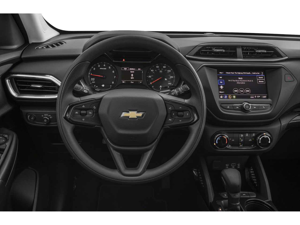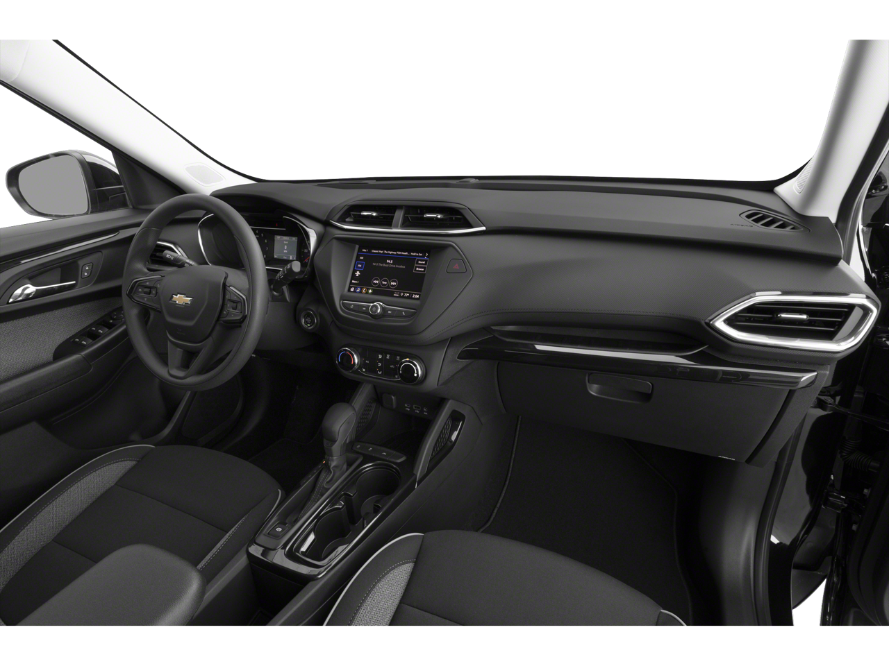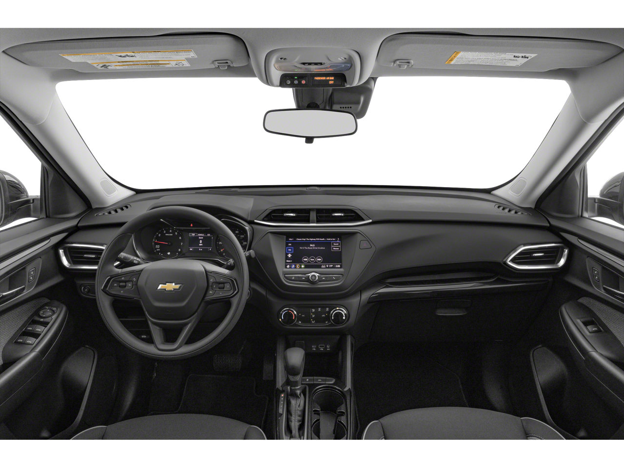 Below is all the standard equipment Convenience Package (1 Type-A & 1 Type-C USB Charging-Only Ports, 120-Volt Power Outlet, 8 Diagonal Color Touchscreen Display, Cabin Humidity Sensor, Driver & Front Passenger Illuminated Vanity Mirrors, Inside Rear-View Auto-Dimming Mirror, and Single-Zone Auto Climate Control Air Conditioning), Driver Confidence Package (Lane Change Alert w/Side Blind Zone Alert, Rear Cross Traffic Alert, and Rear Park Assist), Preferred Equipment Group 1LT, 2-Way Adjustable Front Head Restraints, 2-Way Power Driver Lumbar Seat Adjuster, 4-Way Manual Front Passenger Seat Adjuster, 4-Wheel Disc Brakes, 5.45 Axle Ratio, 6 Speakers, 6-Speaker Audio System Feature, 7 Diagonal Color Touchscreen, 8-Way Power Driver Seat Adjuster, ABS brakes, Air Conditioning, Alloy wheels, AM/FM radio: SiriusXM, Auto High-beam Headlights, Brake assist, Bumpers: body-color, Cloth Seat Trim, Compass, Delay-off headlights, Driver door bin, Driver vanity mirror, Dual front impact airbags, Dual front side impact airbags, Electronic Stability Control, Emergency communication system: OnStar and Chevrolet connected services capable, Exterior Parking Camera Rear, Flat-Folding Front Passenger Seatback, Front & Rear All-Weather Floor Liners (LPO), Front anti-roll bar, Front Bucket Seats, Front Center Armrest, Front fog lights, Front License Plate Bracket, Front reading lights, Front wheel independent suspension, Fully automatic headlights, Heated door mirrors, Heated Driver & Front Passenger Seats, Heated front seats, Illuminated entry, Knee airbag, Low tire pressure warning, Not Equipped w/Rear Park Assist (060), Occupant sensing airbag, Overhead airbag, Overhead console, Panic alarm, Passenger door bin, Passenger vanity mirror, Power door mirrors, Power driver seat, Power steering, Power windows, Radio data system, Radio: Chevrolet Infotainment 3 System, Rear side impact airbag, Rear window defroster, Rear window wiper, Reinforced Electric Heater/Defroster System, Remote keyless entry, Ride & Handling Suspension, Security system, SiriusXM Radio, Speed control, Split folding rear seat, Spoiler, Steering wheel mounted audio controls, Tachometer, Telescoping steering wheel, Tilt steering wheel, Traction control, Trip computer, Variably intermittent wipers, Wheels: 17 High Gloss Black Machined Aluminum, and Wireless Apple CarPlay/Android Auto.