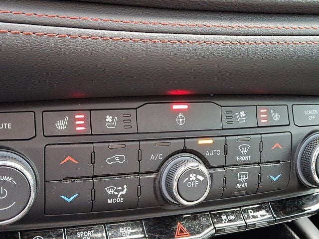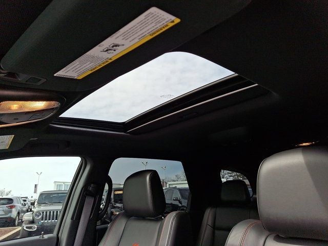 Below is all the standard equipment Blacktop Package (Black Roof Rails, Gloss Black Badges, Gloss Black Exterior Mirrors, GT Gloss Black Badging, Integrated Roof Rail Crossbars, Satin Black Dodge Tail Lamp Badge, and Wheels: 20 x 8.0 Black Noise Aluminum), Quick Order Package 2BG GT Plus (1-Year Trial (Registration Required), 10.1 Touchscreen Display, 115V Auxiliary Power Outlet, 180 Amp Alternator, 4G LTE Wi-Fi Hot Spot, 7 & 4 Pin Wiring Harness, Adaptive Cruise Control w/Stop, Apple CarPlay, Auto-Dimming Exterior Driver Mirror, Class IV Receiver Hitch, Connected Travel & Traffic Services, Disassociated Touchscreen Display, Dual Remote USB Port - Charge Only, Exterior Mirrors w/Heating Element, Exterior Mirrors w/Memory, Exterior Mirrors w/Supplemental Signals, Floor Console w/Leather Armrest, Full Speed Forward Collision Warning Plus, Google Android Auto, GPS Antenna Input, GPS Navigation, HD Radio, Heated Second Row Seats, Heavy-Duty Engine Cooling, Integrated Center Stack Radio, Integrated Voice Command w/Bluetooth®, Leather Trimmed Bucket Seats, Leather Wrapped Door Panels, LED Auxiliary Low Beam & Turn Signal, Power 6x9 Multi-Function Foldaway Mirrors, Power 8-Way Driver Memory 8-Way Passenger Seats, Power Driver/Passenger 4-Way Lumbar Adjust, Power Sunroof, Power Tilt & Telescopic Steering Column, Premium LED Fog Lamps, Radio: Uconnect 5 Nav w/10.1 Display, Radio/Driver Seat/Mirrors Memory, Rear Load Leveling Suspension, Red Accent Stitching, SiriusXM Guardian - Included Trial (B), SiriusXM w/360L, Trailer Brake Control, USB Host Flip, and Ventilated Front Seats), AWD, 3.45 Rear Axle Ratio, 3rd row seats: split-bench, 4-Wheel Disc Brakes, 6 Speakers, ABS brakes, Air Conditioning, Alloy wheels, AM/FM radio: SiriusXM, Apple CarPlay/Android Auto, Auto-dimming Rear-View mirror, Automatic temperature control, Brake assist, Bumpers: body-color, Cloth Bucket Seats w/Shift Insert, Compass, Delay-off headlights, Driver door bin, Driver vanity mirror, Dual front impact airbags, Dual front side impact airbags, Electronic Stability Control, Four wheel independent suspension, Front anti-roll bar, Front Bucket Seats, Front Center Armrest w/Storage, Front dual zone A/C, Front reading lights, Fully automatic headlights, Garage door transmitter, Heated door mirrors, Heated front seats, Heated steering wheel, Illuminated entry, Knee airbag, Leather steering wheel, Low tire pressure warning, Occupant sensing airbag, Outside temperature display, Overhead airbag, Overhead console, Panic alarm, ParkView Rear Back-Up Camera, Passenger door bin, Passenger vanity mirror, Power door mirrors, Power driver seat, Power Liftgate, Power steering, Power windows, Radio data system, Radio: Uconnect 4 w/8.4 Display, Rear air conditioning, Rear anti-roll bar, Rear reading lights, Rear seat center armrest, Rear window defroster, Rear window