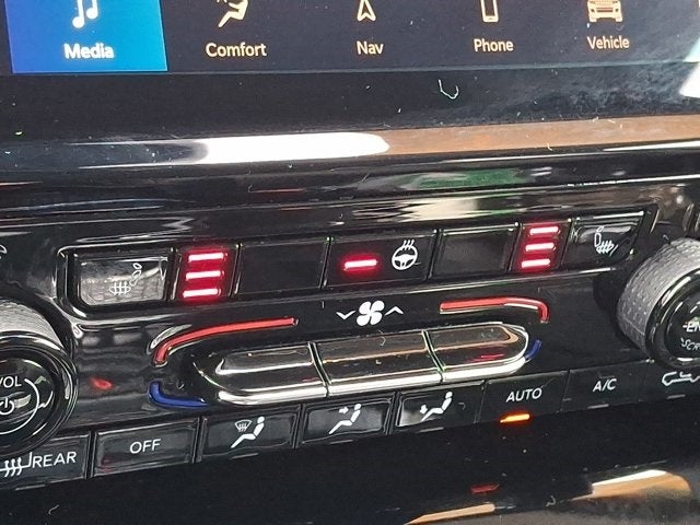 Below is all the standard equipment Quick Order Package 23E, FCA US LLC Certified Pre-Owned Certified, 4WD, Wheels: 18 x 8 Polished/Painted Aluminum, 3.45 Rear Axle Ratio, 4-Wheel Disc Brakes, 6 Speakers, ABS brakes, Active Noise Control System, Air Conditioning, Alloy wheels, AM/FM radio: SiriusXM with 360L, Anti-whiplash front head restraints, Audio memory, Auto High-beam Headlights, Automatic temperature control, Brake assist, Bumpers: body-color, Capri Leatherette Seats, Compass, Delay-off headlights, Driver door bin, Driver vanity mirror, Dual front impact airbags, Dual front side impact airbags, Electronic Stability Control, Emergency communication system, Four wheel independent suspension, Front anti-roll bar, Front Bucket Seats, Front Center Armrest w/Storage, Front dual zone A/C, Front fog lights, Front License Plate Bracket, Front reading lights, Fully automatic headlights, Garage door transmitter, Heated door mirrors, Heated front seats, Heated rear seats, Heated steering wheel, Illuminated entry, Knee airbag, Low tire pressure warning, Memory seat, Molded In Color Black/Gloss Black Roof Rails, Navigation System, Normal Duty Suspension, Occupant sensing airbag, Outside temperature display, Overhead airbag, Overhead console, Panic alarm, ParkView Rear Back-Up Camera, Passenger door bin, Passenger vanity mirror, Power door mirrors, Power driver seat, Power Liftgate, Power passenger seat, Power steering, Power windows, Radio data system, Radio: Uconnect 5 Nav w/10.1 Display, Rear anti-roll bar, Rear reading lights, Rear window defroster, Rear window wiper, Remote keyless entry, Security system, Speed control, Speed-Sensitive Wipers, Split folding rear seat, Spoiler, Steering wheel mounted audio controls, Tachometer, Telescoping steering wheel, Tilt steering wheel, Traction control, Trip computer, Turn signal indicator mirrors, Variably intermittent wipers, and Voltmeter.