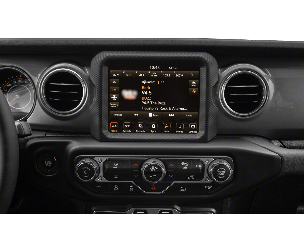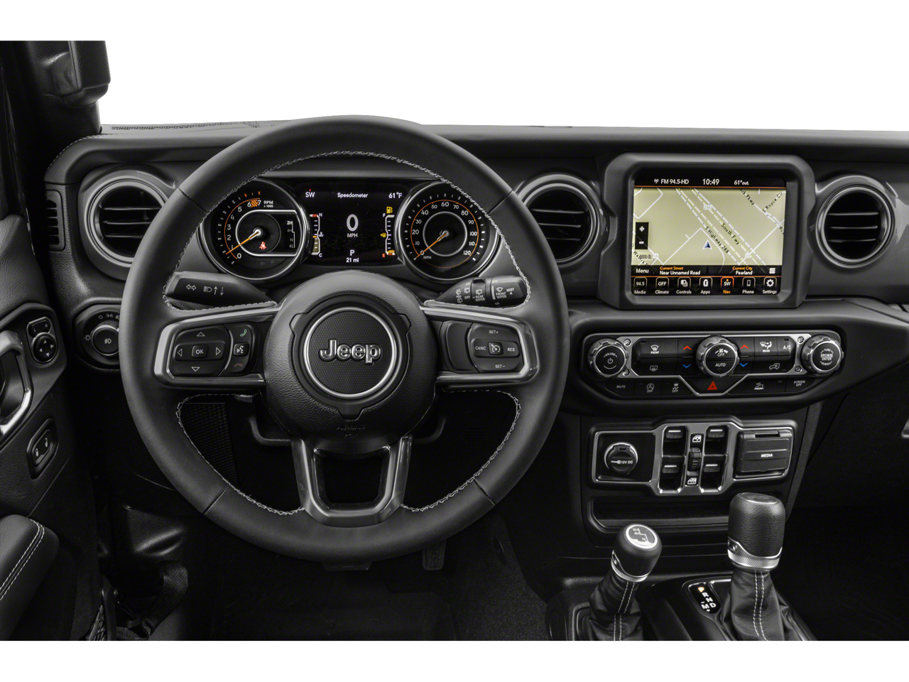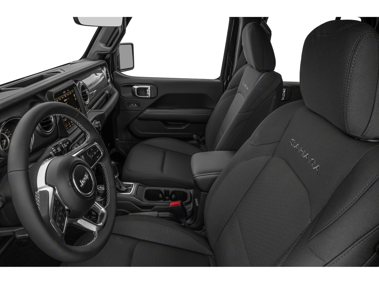 Below is all the standard equipment Cold Weather Group (Heated Front Seats, Heated Steering Wheel, and Remote Start System), Quick Order Package 22G Sahara, 3.45 Overall Top Gear Ratio, 4-Wheel Disc Brakes, 9 Speakers, ABS brakes, Air Conditioning, Alloy wheels, AM/FM radio: SiriusXM, Apple CarPlay/Android Auto, Auto-dimming Rear-View mirror, Automatic temperature control, Aux Battery, Brake assist, Cloth Low-Back Bucket Seats, Compass, Delay-off headlights, Driver door bin, Driver vanity mirror, Dual front impact airbags, Dual front side impact airbags, Electronic Stability Control, Emergency communication system: SiriusXM Guardian, Front anti-roll bar, Front Bucket Seats, Front Center Armrest w/Storage, Front dual zone A/C, Front fog lights, Front License Plate Bracket, Front reading lights, Fully automatic headlights, Garage door transmitter, Heated door mirrors, Heavy Duty Suspension w/Gas Shocks, Illuminated entry, Integrated roll-over protection, Low tire pressure warning, MOPAR All-Weather Floor Mats, Navigation System, Non-Lock Fuel Cap w/o Discriminator, Occupant sensing airbag, Outside temperature display, Panic alarm, ParkView Rear Back-Up Camera, Passenger door bin, Passenger vanity mirror, Power door mirrors, Power steering, Power Top Quarter Window Storage Bag, Power windows, Radio data system, Radio: Uconnect 4C Nav w/8.4 Display, Rear anti-roll bar, Rear reading lights, Remote keyless entry, Removable Rear Quarter Windows, Security system, Side Steps, Sky 1-Touch Power Top, Speed control, Split folding rear seat, Steering wheel mounted audio controls, Stop-Start Dual Battery System, Tachometer, Telescoping steering wheel, Tilt steering wheel, Traction control, Trip computer, Variably intermittent wipers, Voltmeter, and Wheels: 18 x 7.5 Machined w/Gray Spokes.