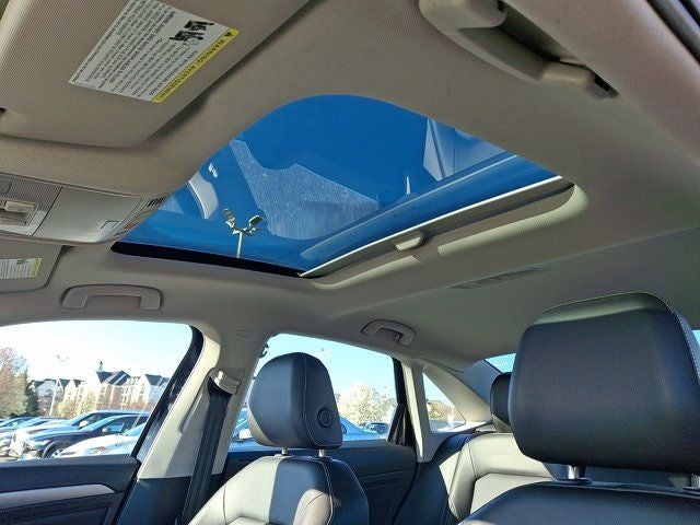 Below is all the standard equipment Volkswagen Certified Pre-Owned Certified, Titan Black Premium Synthetic, Power Tilting & Sliding Panoramic Sunroof, 4 Speakers, 4-Wheel Disc Brakes, ABS brakes, Active Blind Spot Monitor, Air Conditioning, Alloy wheels, AM/FM radio, Auto-dimming Rear-View mirror, Automatic temperature control, Brake assist, Bumpers: body-color, Delay-off headlights, Driver door bin, Driver vanity mirror, Dual front impact airbags, Dual front side impact airbags, Electronic Stability Control, Emergency communication system: VW Car-Net Safe & Secure 5-year, Exterior Parking Camera Rear, Front anti-roll bar, Front Bucket Seats, Front Center Armrest, Front dual zone A/C, Front wheel independent suspension, Fully automatic headlights, Heated door mirrors, Heated Front Comfort Sport Seats, Heated front seats, Illuminated entry, Leather Shift Knob, Low tire pressure warning, Occupant sensing airbag, Outside temperature display, Overhead airbag, Overhead console, Panic alarm, Passenger door bin, Passenger vanity mirror, Power door mirrors, Power driver seat, Power steering, Power windows, Radio data system, Radio: MIB3 Composition Color w/6.5 Touchscreen, Rain sensing wipers, Rear anti-roll bar, Rear reading lights, Rear seat center armrest, Rear window defroster, Remote keyless entry, Speed control, Speed-sensing steering, Split folding rear seat, Steering wheel mounted audio controls, Tachometer, Telescoping steering wheel, Tilt steering wheel, Traction control, Trip computer, V-Tex Leatherette Seat Trim, Variably intermittent wipers, and Wheels: 17 Twin 5-Spoke Silver Painted Alloy.