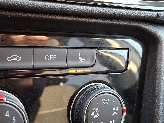 Below is all the standard equipment Black Wheel Package (Wheels: 18 Black Painted Alloy), Panoramic Sunroof Package, Volkswagen Certified Pre-Owned Certified, 4-Wheel Disc Brakes, 5.20 Axle Ratio, 6 Speakers, ABS brakes, Active Blind Spot Monitor, Air Conditioning, Alloy wheels, AM/FM radio: SiriusXM with 360L, Auto High-beam Headlights, Brake assist, Bumpers: body-color, CloudTex & Cloth Seating Surfaces, Compass, Delay-off headlights, Driver door bin, Driver vanity mirror, Dual front impact airbags, Dual front side impact airbags, Electronic Stability Control, Emergency communication system: VW Car-Net Safe & Secure 5-year, Exterior Parking Camera Rear, Four wheel independent suspension, Front anti-roll bar, Front Bucket Seats, Front Center Armrest, Front reading lights, Front Strut Rear Multi-Link Suspension, Fully automatic headlights, Heated door mirrors, Heated Front Comfort Seats, Heated front seats, Heated steering wheel, Illuminated entry, Leather Shift Knob, Low tire pressure warning, Occupant sensing airbag, Outside temperature display, Overhead airbag, Overhead console, Panic alarm, Passenger door bin, Passenger vanity mirror, Power door mirrors, Power driver seat, Power steering, Power windows, Radio data system, Radio: MIB3 Composition Media AM/FM/HD, Rain sensing wipers, Rear anti-roll bar, Rear seat center armrest, Rear window defroster, Rear window wiper, Remote keyless entry, Security system, Speed control, Speed-sensing steering, Split folding rear seat, Spoiler, Steering wheel mounted audio controls, Tachometer, Telescoping steering wheel, Tilt steering wheel, Traction control, Trip computer, Variably intermittent wipers, and Wheels: 18 2-Tone Machined Alloy.