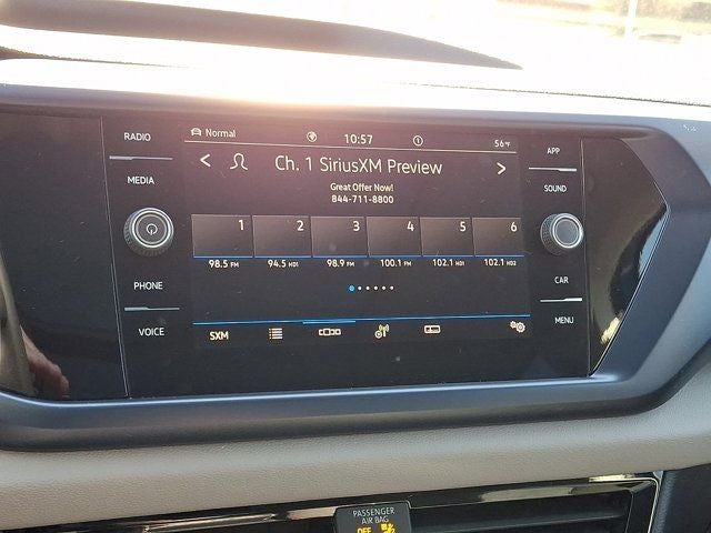 - Radio: MIB3 Composition Media AM/FM/HD -inc: 8" touchscreen, WMA/MP3/FLAC player w/USB-C, voice control, capability for in-vehicle 4G LTE enabled Wi-Fi (cellular data plan required; includes limited trial), capability for VW Car-Net services (capabilities for certain services vary; requires enrollment or subscription), 6-speaker sound system, Bluetooth® connectivity (for compatible devices), SiriusXM w/360L (w/3-month All Access trial; 360L services require acceptance of Car-Net terms), App-Connect smartphone integration (w/Apple CarPlay, Android Auto and MirrorLink) via USB, Wireless App-Connect smartphone integration (for compatible devices) w/multi-phone pairing capability and Qi wireless inductive charger (for compatible mobile phones and accessories)
