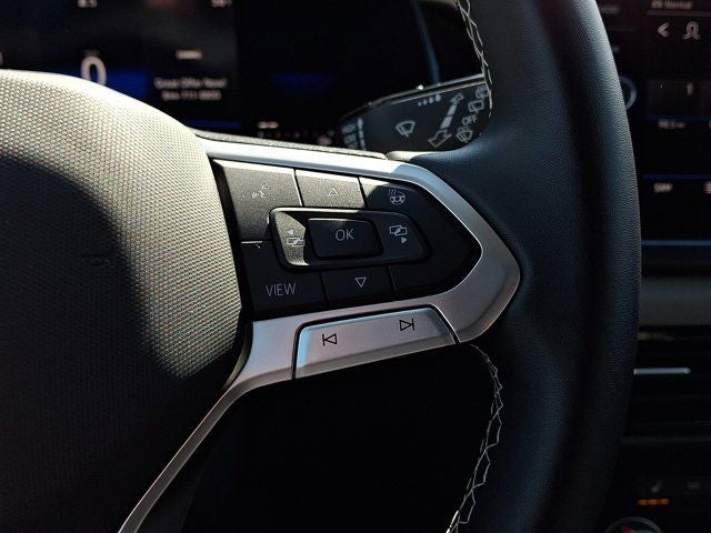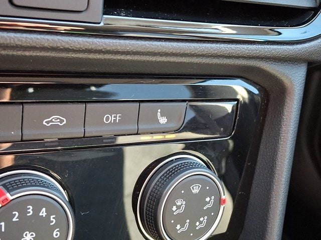 Below is all the standard equipment Panoramic Sunroof Package, Volkswagen Certified Pre-Owned Certified, 4-Wheel Disc Brakes, 5.20 Axle Ratio, 6 Speakers, ABS brakes, Active Blind Spot Monitor, Air Conditioning, Alloy wheels, AM/FM radio: SiriusXM with 360L, Auto High-beam Headlights, Auto-Dimming Rearview Mirror (SRV), Brake assist, Bumpers: body-color, Carpeted MojoMats (Set of 4), Chrome Bumperdillo Protection Plate for Rear Bumper, CloudTex & Cloth Seating Surfaces, Compass, Delay-off headlights, Driver door bin, Driver vanity mirror, Dual front impact airbags, Dual front side impact airbags, Electronic Stability Control, Emergency communication system: VW Car-Net Safe & Secure 5-year, Exterior Parking Camera Rear, First Aid Kit, Four wheel independent suspension, Front anti-roll bar, Front Bucket Seats, Front Center Armrest, Front reading lights, Front Strut Rear Multi-Link Suspension, Fully automatic headlights, Heated door mirrors, Heated Front Comfort Seats, Heated front seats, Heated steering wheel, Illuminated entry, Leather Shift Knob, Low tire pressure warning, Occupant sensing airbag, Outside temperature display, Overhead airbag, Overhead console, Panic alarm, Passenger door bin, Passenger vanity mirror, Power door mirrors, Power driver seat, Power steering, Power windows, Radio data system, Radio: MIB3 Composition Media AM/FM/HD, Rain sensing wipers, Rear anti-roll bar, Rear seat center armrest, Rear window defroster, Rear window wiper, Remote keyless entry, Security system, Speed control, Speed-sensing steering, Split folding rear seat, Spoiler, Steering wheel mounted audio controls, Tachometer, Telescoping steering wheel, Tilt steering wheel, Traction control, Trip computer, Variably intermittent wipers, and Wheels: 18 2-Tone Machined Alloy.