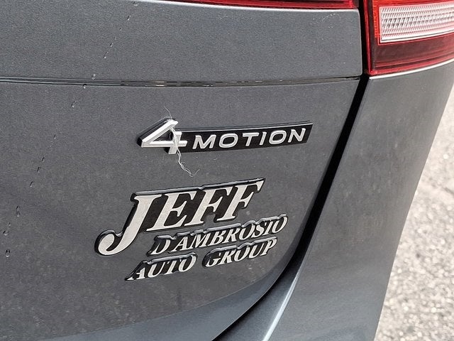 Below is all the standard equipment Panoramic Sunroof Package, Volkswagen Certified Pre-Owned Certified, AWD, 3.33 Axle Ratio, 4-Wheel Disc Brakes, 4-Wheel Independent Suspension, 6 Speakers, ABS brakes, Air Conditioning, Alloy wheels, AM/FM radio: SiriusXM with 360L, Auto-dimming Rear-View mirror, Automatic temperature control, Brake assist, Bumpers: body-color, Compass, Delay-off headlights, Driver door bin, Driver vanity mirror, Dual front impact airbags, Dual front side impact airbags, Electronic Stability Control, Emergency communication system: VW Car-Net Safe & Secure 5-year, Exterior Parking Camera Rear, Four wheel independent suspension, Front anti-roll bar, Front Bucket Seats, Front Center Armrest, Front dual zone A/C, Front reading lights, Fully automatic headlights, Heated door mirrors, Heated Front Comfort Seats, Heated front seats, Illuminated entry, Leather Shift Knob, Low tire pressure warning, Occupant sensing airbag, Outside temperature display, Overhead airbag, Overhead console, Panic alarm, Passenger door bin, Passenger vanity mirror, Perforated V-Tex Leatherette Seating Surfaces, Power door mirrors, Power driver seat, Power Liftgate, Power steering, Power windows, Radio data system, Radio: MIB3 Composition Media AM/FM/HD, Rain sensing wipers, Rear anti-roll bar, Rear reading lights, Rear seat center armrest, Rear window defroster, Rear window wiper, Remote keyless entry, Security system, Speed control, Speed-sensing steering, Split folding rear seat, Spoiler, Steering wheel mounted audio controls, Tachometer, Telescoping steering wheel, Tilt steering wheel, Traction control, Trip computer, Turn signal indicator mirrors, Variably intermittent wipers, and Wheels: 18 Dark Graphite Painted 10-Spoke Alloy.