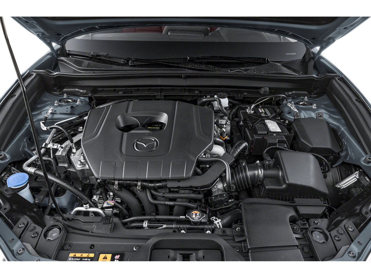 Below is all the standard equipment 4-Wheel Disc Brakes, 4.095 Axle Ratio, ABS brakes, Air Conditioning, Alloy wheels, AM/FM radio, AppLink/Apple CarPlay and Android Auto, Auto High-beam Headlights, Automatic temperature control, Brake assist, Bumpers: body-color, Compass, Delay-off headlights, Driver door bin, Driver vanity mirror, Dual front impact airbags, Dual front side impact airbags, Electronic Stability Control, Emergency communication system: Mazda Connected Services (3-year complimentary trial included), Exterior Parking Camera Rear, Front anti-roll bar, Front Bucket Seats, Front Center Armrest, Front dual zone A/C, Front reading lights, Front wheel independent suspension, Fully automatic headlights, Heated door mirrors, Heated Front Bucket Seats, Heated front seats, Illuminated entry, Knee airbag, Leather Shift Knob, Leather steering wheel, Low tire pressure warning, MAZDA CONNECT Infotainment System, Mazda Navigation System, Memory seat, Occupant sensing airbag, Outside temperature display, Overhead airbag, Overhead console, Panic alarm, Passenger door bin, Passenger vanity mirror, Power door mirrors, Power driver seat, Power moonroof, Power steering, Power windows, Radio data system, Rain sensing wipers, Rear seat center armrest, Rear side impact airbag, Rear window defroster, Rear window wiper, Remote keyless entry, Roof Rail Credit, Speed control, Speed-sensing steering, Split folding rear seat, Spoiler, Steering wheel mounted audio controls, Tachometer, Telescoping steering wheel, Tilt steering wheel, Traction control, Trip computer, Turn signal indicator mirrors, Variably intermittent wipers, and Wheels: 18 x 7J Aluminum Alloy.