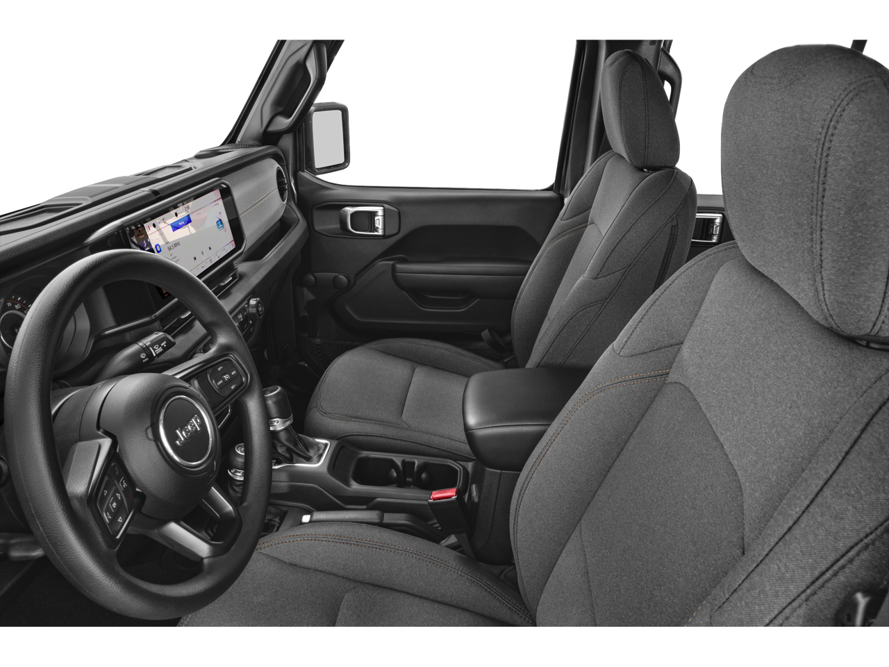 Below is all the standard equipment Quick Order Package 24G Sahara, Safety Group (Auto High Beam Headlamp Control, Blind Spot & Cross Path Detection, and ParkSense Rear Park Assist System), Body Color 3-Piece Hard Top, Freedom Panel Storage Bag, No Soft Top, Rear Window Defroster, Rear Window Wiper/Washer, Wheels: 18 x 7.5 Machine/Painted Gray, 110 MPH Vehicle Max Speed Calibration, 12.3 Touchscreen Display, 3.45 Overall Top Gear Ratio, 4-Wheel Disc Brakes, 8 Speakers, ABS brakes, Air Conditioning, Alloy wheels, AM/FM radio: SiriusXM, Apple CarPlay, Apple CarPlay/Android Auto, Automatic temperature control, Aux Battery, Brake assist, Cloth Low-Back Bucket Seats, Compass, Connectivity - US/Canada, Delay-off headlights, Disassociated Touchscreen Display, Driver door bin, Driver vanity mirror, Dual front impact airbags, Dual front side impact airbags, Electronic Stability Control, Emergency communication system: Jeep Connect, Front anti-roll bar, Front Bucket Seats, Front Center Armrest w/Storage, Front dual zone A/C, Front fog lights, Front License Plate Bracket, Front reading lights, Fully automatic headlights, Google Android Auto, Heated door mirrors, Heated front seats, Heated steering wheel, Heavy Duty Suspension w/Gas Shocks, Illuminated entry, Integrated Center Stack Radio, Integrated roll-over protection, Integrated Voice Command w/Bluetooth®, Low tire pressure warning, MOPAR All-Weather Floor Mats, Non-Lock Fuel Cap w/o Discriminator, Occupant sensing airbag, Outside temperature display, Overhead airbag, Panic alarm, ParkView Rear Back-Up Camera, Passenger door bin, Passenger vanity mirror, Power door mirrors, Power steering, Power windows, Radio data system, Radio: Uconnect 5 w/12.3 Display, Rear anti-roll bar, Rear reading lights, Remote keyless entry, Security system, Side Steps, Speed control, Split folding rear seat, Steering wheel mounted audio controls, Stop-Start Dual Battery System, Tachometer, Telescoping steering wheel, Tilt steering wheel, Traction control, Trip computer, Variably intermittent wipers, and Voltmeter.