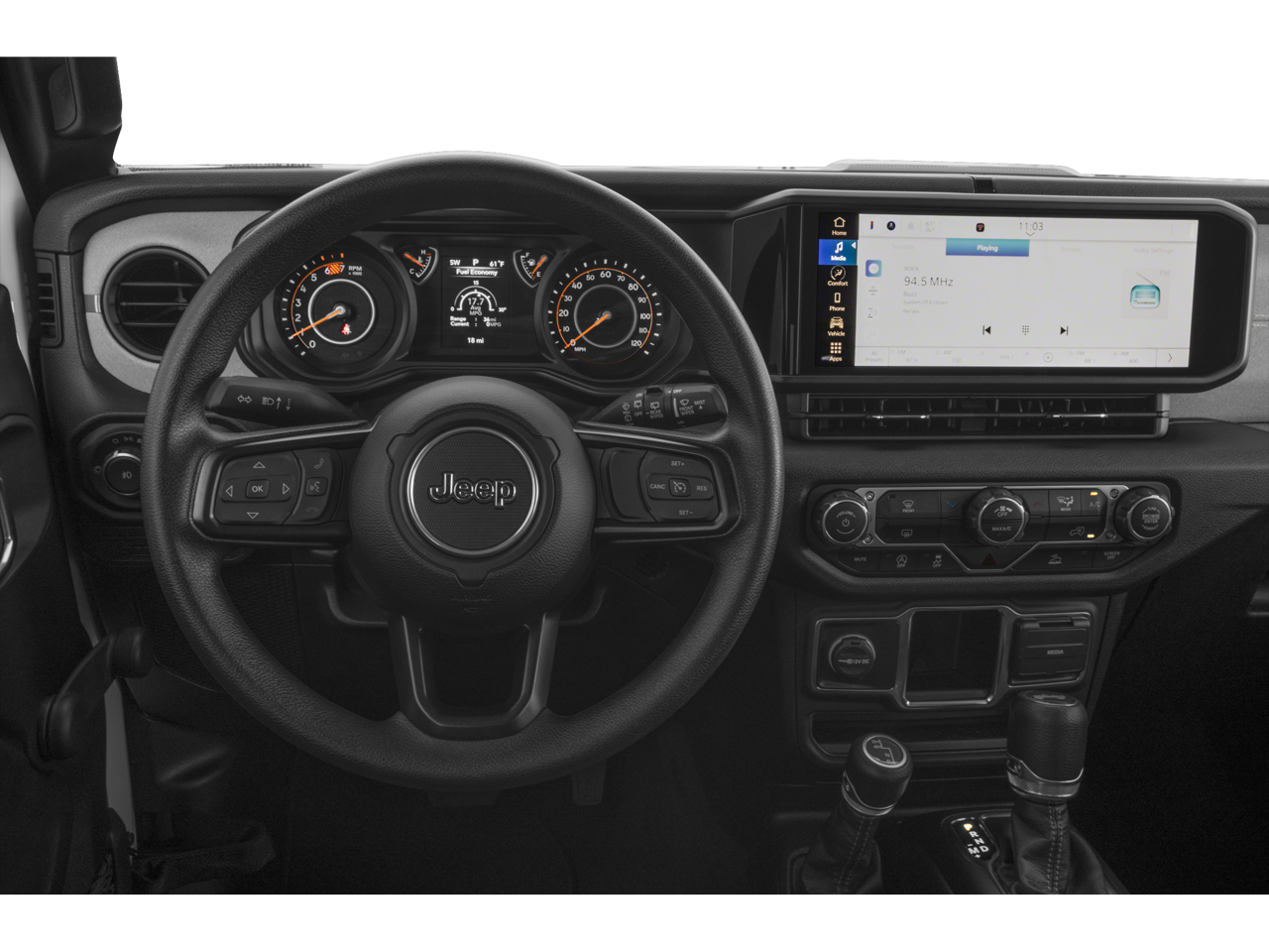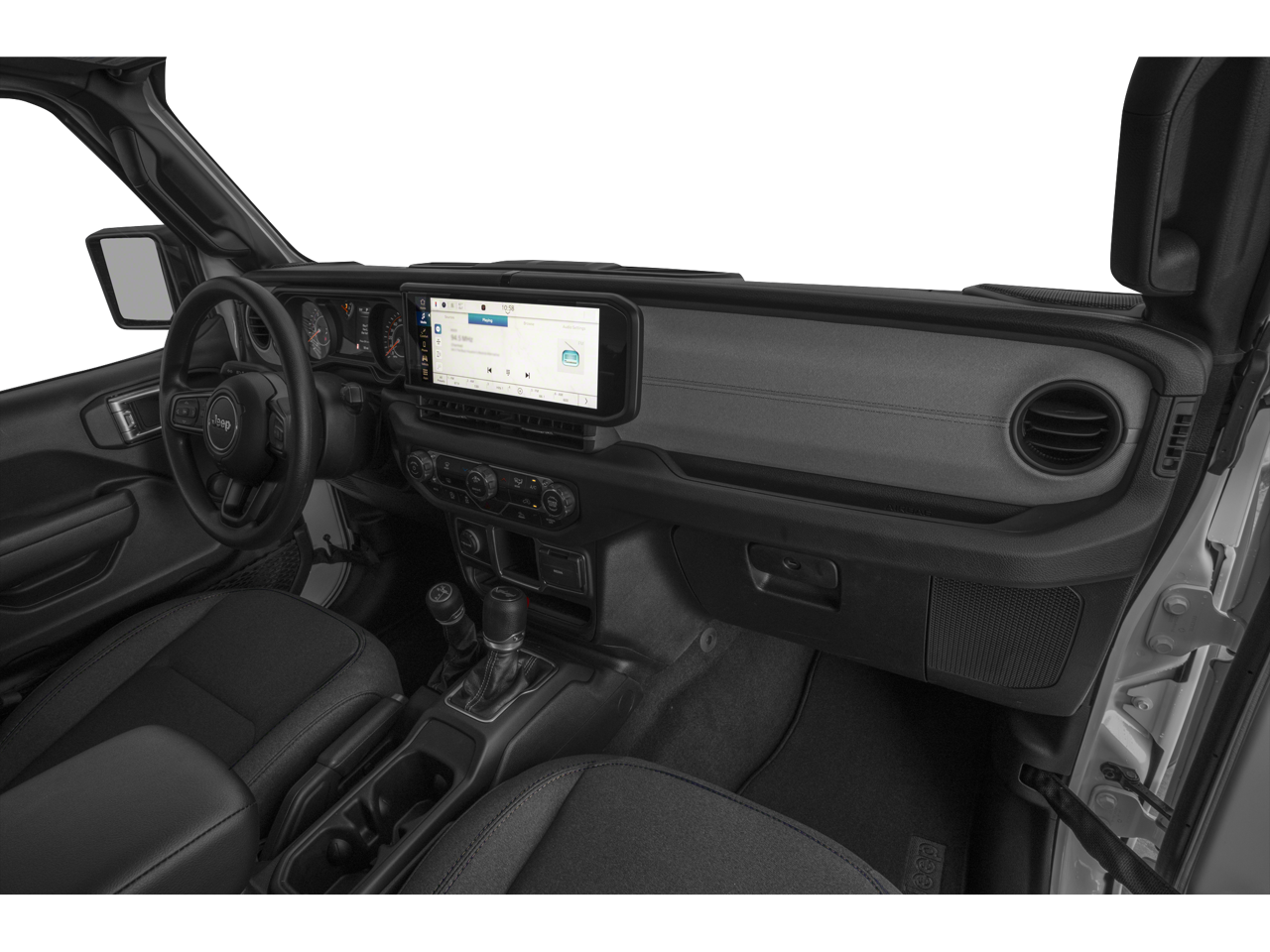 Below is all the standard equipment Convenience Group (2-Door Passive Entry, Front Door Locks, Air Conditioning w/Auto Temperature Control, Air Filtering, Cluster 7.0 TFT Color Display, Emergency/Assistance Call, Heated Front Seats, Heated Steering Wheel, Remote Start System, and Universal Garage Door Opener), Quick Order Package 24S Sport S (Advanced Brake Assist, Automatic Headlamps, Corning Gorilla Glass, Deep Tint Sunscreen Windows, Enhanced Adaptive Cruise Control, Front 1-Touch Down Power Windows, Power Heated Mirrors, Premium Wrapped Steering Wheel, Remote Keyless Entry, Security Alarm, Speed Sensitive Power Locks, Sport S, Sun Visors w/Illuminated Vanity Mirrors, and Wheels: 17 x 7.5 Gray), FCA US LLC Certified Pre-Owned Certified, Black 3-Piece Hard Top, Freedom Panel Storage Bag, No Soft Top, Rear Window Defroster, Rear Window Wiper/Washer, 110 MPH Vehicle Max Speed Calibration, 3.45 Overall Top Gear Ratio, 4-Wheel Disc Brakes, 8 Speakers, ABS brakes, AM/FM radio: SiriusXM with 360L, Apple CarPlay/Android Auto, Auxiliary Battery, Brake assist, Cloth Low-Back Bucket Seats, Compass, Delay-off headlights, Driver door bin, Driver vanity mirror, Dual front impact airbags, Dual front side impact airbags, Electronic Stability Control, Front anti-roll bar, Front Bucket Seats, Front Center Armrest w/Storage, Front fog lights, Front reading lights, Integrated roll-over protection, Low tire pressure warning, MOPAR All-Weather Floor Mats, Non-Locking Fuel Cap w/o Discriminator, Normal Duty Suspension, Occupant sensing airbag, Outside temperature display, Overhead airbag, ParkView Rear Back-Up Camera, Passenger door bin, Passenger vanity mirror, Power steering, Radio data system, Radio: Uconnect 5 w/12.3 Display, Rear anti-roll bar, Rear reading lights, Speed control, Start-Stop Dual Battery System, Steering wheel mounted audio controls, Tachometer, Telescoping steering wheel, Tilt steering wheel, Traction control, Trip computer, and Variably intermittent wipers.