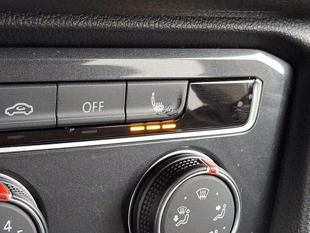 Below is all the standard equipment Volkswagen Certified Pre-Owned Certified, AWD, Wheels: 17 2-Tone Machined Twin 5-Spoke Alloy, 3.33 Axle Ratio, 4-Wheel Disc Brakes, 4-Wheel Independent Suspension, 6 Speakers, ABS brakes, Air Conditioning, Alloy wheels, AM/FM radio, Brake assist, Bumpers: body-color, Cloth Seating Surfaces, Compass, Delay-off headlights, Driver door bin, Driver vanity mirror, Dual front impact airbags, Dual front side impact airbags, Electronic Stability Control, Emergency communication system: VW Car-Net Safe & Secure 5-year, Exterior Parking Camera Rear, Four wheel independent suspension, Front anti-roll bar, Front Bucket Seats, Front Center Armrest, Front reading lights, Fully automatic headlights, Heated door mirrors, Heated Front Seats, Heated front seats, Illuminated entry, Leather Shift Knob, Low tire pressure warning, Occupant sensing airbag, Outside temperature display, Overhead airbag, Overhead console, Panic alarm, Passenger door bin, Passenger vanity mirror, Power door mirrors, Power steering, Power windows, Radio data system, Rain sensing wipers, Rear anti-roll bar, Rear reading lights, Rear seat center armrest, Rear window defroster, Rear window wiper, Remote keyless entry, Speed control, Speed-sensing steering, Split folding rear seat, Spoiler, Steering wheel mounted audio controls, Tachometer, Telescoping steering wheel, Tilt steering wheel, Traction control, Trip computer, Turn signal indicator mirrors, and Variably intermittent wipers.