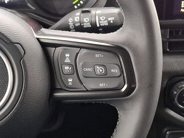 Below is all the standard equipment Convenience Group (2-Door Passive Entry, Front Door Locks, Air Conditioning w/Auto Temperature Control, Air Filtering, Emergency/Assistance Call, Heated Front Seats, Heated Steering Wheel, Remote Start System, and Universal Garage Door Opener), Quick Order Package 29W Willys 4xe (4-Wheel Drive Swing Gate Decal, 4.10 Rear Axle Ratio, 7 & 4 Pin Wiring Harness, 97 MPH Vehicle Max Speed Calibration, Auxiliary Switches, Black Grille, Class II Receiver Hitch, Conventional Differential Front Axle, E-Locker Rear Axle, Front LED Fog Lamps, LED Premium Reflector Headlamps, Molded in Color Rubicon Highline Flare, MOPAR All-Weather Floor Mats, Off-Road Plus Mode, Wheels: 17 x 7.5 Painted Black, Willy's Suspension, and Willys 4xe Hood Decal), FCA US LLC Certified Pre-Owned Certified, 2.0L I4 DOHC, Black 3-Piece Hard Top, Freedom Panel Storage Bag, Rear Window Defroster, Rear Window Wiper/Washer, 4-Wheel Disc Brakes, 8 Speakers, ABS brakes, Air Conditioning, Alloy wheels, AM/FM radio: SiriusXM, Apple CarPlay/Android Auto, Brake assist, Cloth Low-Back Bucket Seats, Compass, Delay-off headlights, Driver door bin, Driver vanity mirror, Dual front impact airbags, Dual front side impact airbags, Electronic Stability Control, Front anti-roll bar, Front Bucket Seats, Front Center Armrest w/Storage, Front fog lights, Front License Plate Bracket (DISC), Front reading lights, Fully automatic headlights, Heated door mirrors, Illuminated entry, Integrated roll-over protection, Low tire pressure warning, Occupant sensing airbag, Outside temperature display, Overhead airbag, Panic alarm, ParkView Rear Back-Up Camera, Passenger door bin, Passenger vanity mirror, Power door mirrors, Power steering, Power windows, Radio data system, Radio: Uconnect 5 w/12.3 Display, Rear anti-roll bar, Rear reading lights, Remote keyless entry, Security system, Speed control, Split folding rear seat, Sport Suspension, Steering wheel mounted audio controls, Tachometer, Telescoping steering wheel, Tilt steering wheel, Traction control, Trip computer, Variably intermittent wipers, Voltmeter, and Wheels: 20 x 8 Machined/Painted Gray.