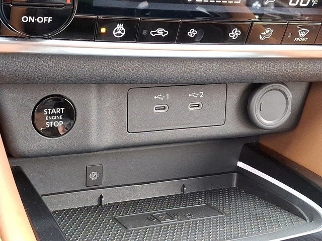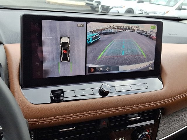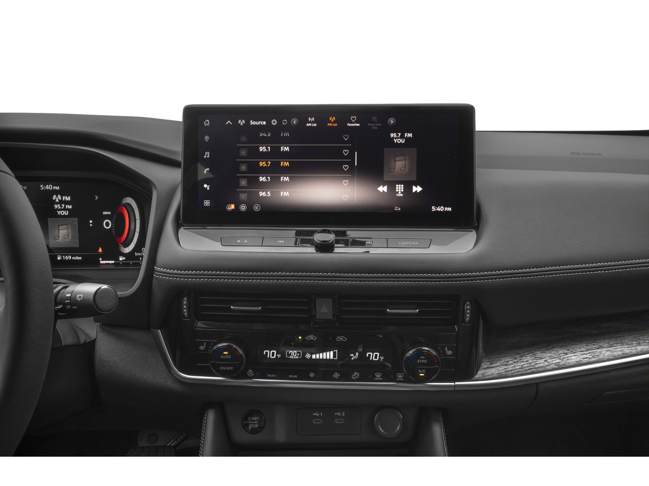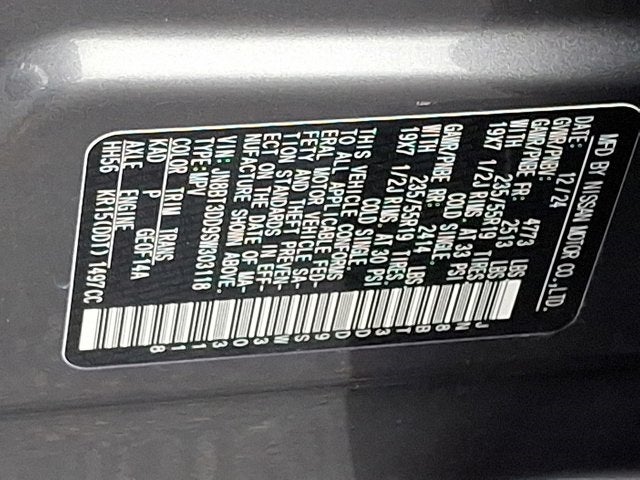 Below is all the standard equipment AWD, 10 Speakers, 4-Wheel Disc Brakes, ABS brakes, Air Conditioning, Alloy wheels, Auto High-beam Headlights, Auto-dimming Rear-View mirror, Automatic temperature control, Brake assist, Bumpers: body-color, Chrome Rear Bumper Protector, Delay-off headlights, Driver door bin, Driver vanity mirror, Dual front impact airbags, Dual front side impact airbags, Electronic Stability Control, Emergency communication system: NissanConnect Services, First Aid Kit, Four wheel independent suspension, Front anti-roll bar, Front Bucket Seats, Front Center Armrest, Front dual zone A/C, Front reading lights, Fully automatic headlights, Garage door transmitter: myQ Connected Garage, Heated door mirrors, Heated front seats, Heated steering wheel, Illuminated entry, Knee airbag, Low tire pressure warning, Memory seat, Occupant sensing airbag, Outside temperature display, Overhead airbag, Overhead console, Panic alarm, Passenger door bin, Passenger vanity mirror, Power door mirrors, Power driver seat, Power Liftgate, Power moonroof, Power passenger seat, Power steering, Power windows, Radio data system, Rear anti-roll bar, Rear reading lights, Rear seat center armrest, Rear side impact airbag, Rear window defroster, Rear window wiper, Remote keyless entry, Roof Rail Cross Bars, Security system, Speed control, Speed-sensing steering, Speed-Sensitive Wipers, Split folding rear seat, Spoiler, Steering wheel mounted audio controls, Tachometer, Telescoping steering wheel, Tilt steering wheel, Traction control, Trip computer, Turn signal indicator mirrors, USB Charging Cable Set - Nissan, and Variably intermittent wipers.