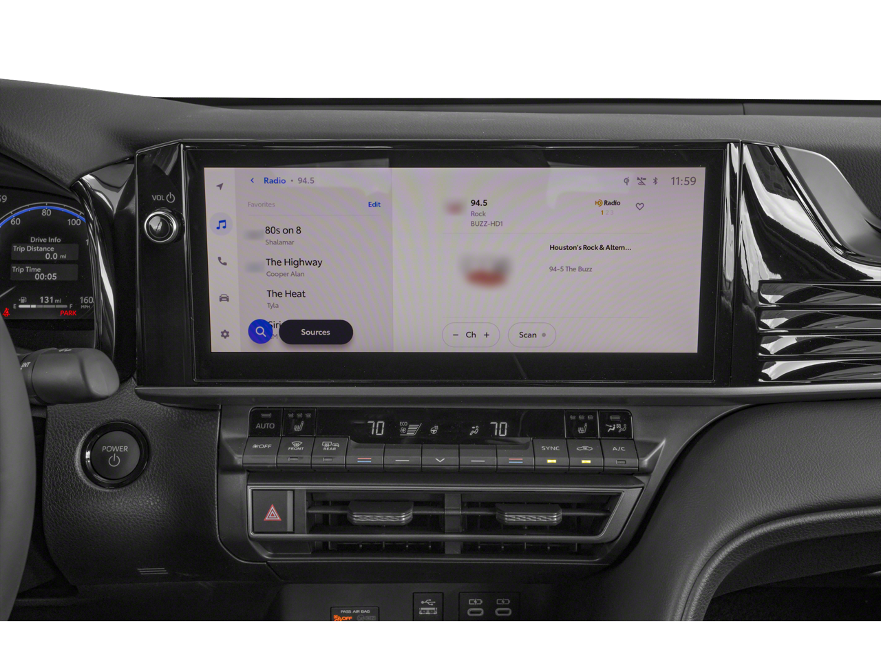 Below is all the standard equipment Black w/Leather Seat Trim, Panoramic Glass Roof, 4-Wheel Disc Brakes, 6 Speakers, ABS brakes, Air Conditioning, Alloy wheels, AM/FM radio: SiriusXM, Apple CarPlay/Android Auto, Auto High-beam Headlights, Auto-dimming Rear-View mirror, Automatic temperature control, Brake assist, Bumpers: body-color, Delay-off headlights, Driver door bin, Driver vanity mirror, Dual front impact airbags, Dual front side impact airbags, Electronic Stability Control, Emergency communication system: Safety Connect (5-year trial), Exterior Parking Camera Rear, Four wheel independent suspension, Front anti-roll bar, Front Bucket Seats, Front Center Armrest, Front dual zone A/C, Front reading lights, Fully automatic headlights, Garage door transmitter: HomeLink, Heated door mirrors, Heated Front Seats, Heated front seats, Heated steering wheel, Illuminated entry, Knee airbag, Leather Seat Trim, Leather Shift Knob, Leather steering wheel, Low tire pressure warning, Navigation system: Drive Connect (1 year trial) includes Cloud Navigation with real time traffic and Google POI, Occupant sensing airbag, Outside temperature display, Overhead airbag, Overhead console, Panic alarm, Passenger door bin, Passenger vanity mirror, Power door mirrors, Power driver seat, Power passenger seat, Power steering, Power windows, Radio data system, Radio: 12.3 Toyota Multimedia Audio, Rear anti-roll bar, Rear reading lights, Rear seat center armrest, Rear window defroster, Remote keyless entry, Security system, Speed control, Speed-sensing steering, Split folding rear seat, Spoiler, Steering wheel mounted audio controls, Telescoping steering wheel, Tilt steering wheel, Traction control, Trip computer, Turn signal indicator mirrors, Variably intermittent wipers, and Wheels: 19 Smoked Gray and Black-Finished Alloy.